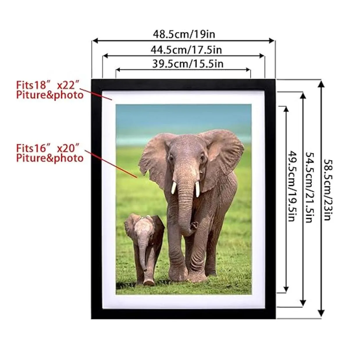 Tamaño de los marcos de fotos de diamantes: el marco de fotos de diamante viene con dos paspartúes, fotos de 16 x 20 pulgadas y 14 x 18 pulgadas con paspartú, 18 x 22 pulgadas sin paspartú, el marco de pintura de diamantes es muy adecuado para 15.7 x 19.7 in. pintura.
