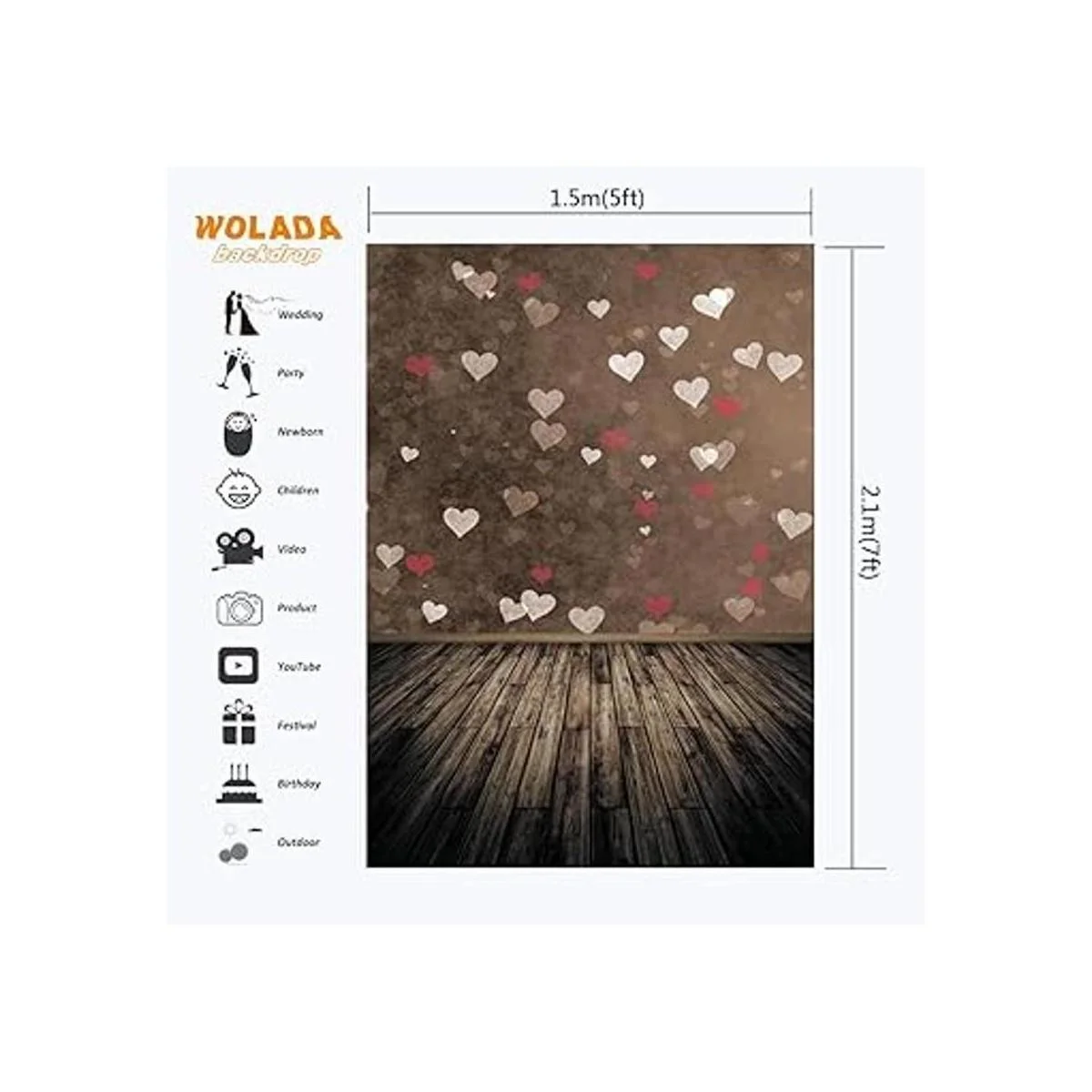 WOLADA Telón de fondo para fotografía del día de San Valentín, 4.9 x 9.2 ft, fondo de madera vintage con tema de amor romántico, boda, aniversario, compromiso, boda, fiesta, decoración, telón de fondo de fotos, accesorios de estudio 10876