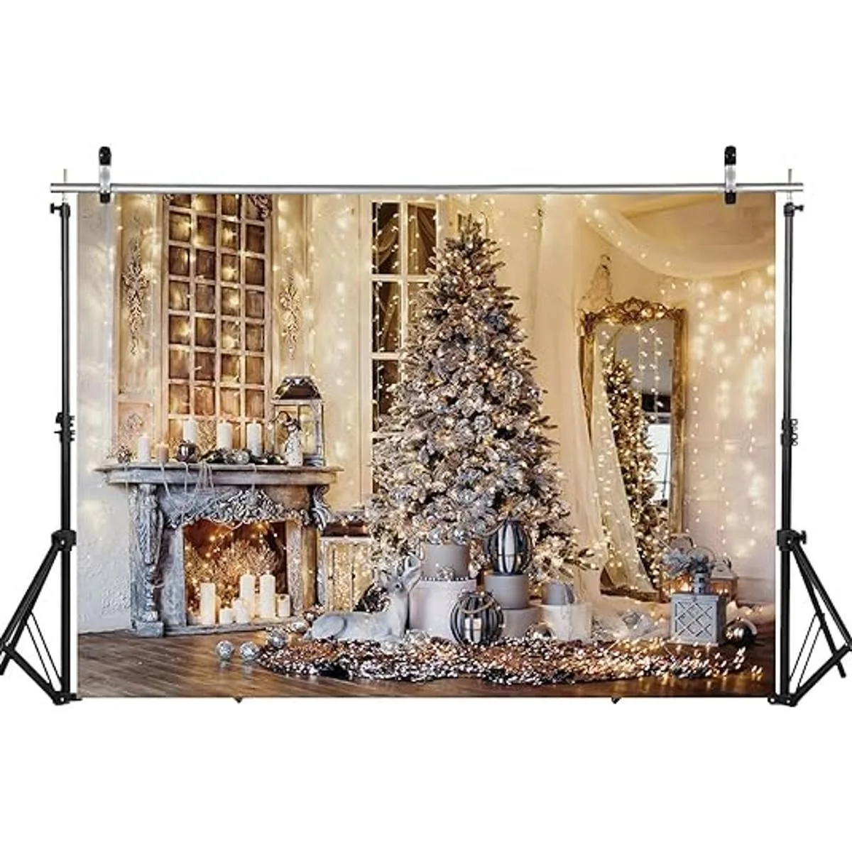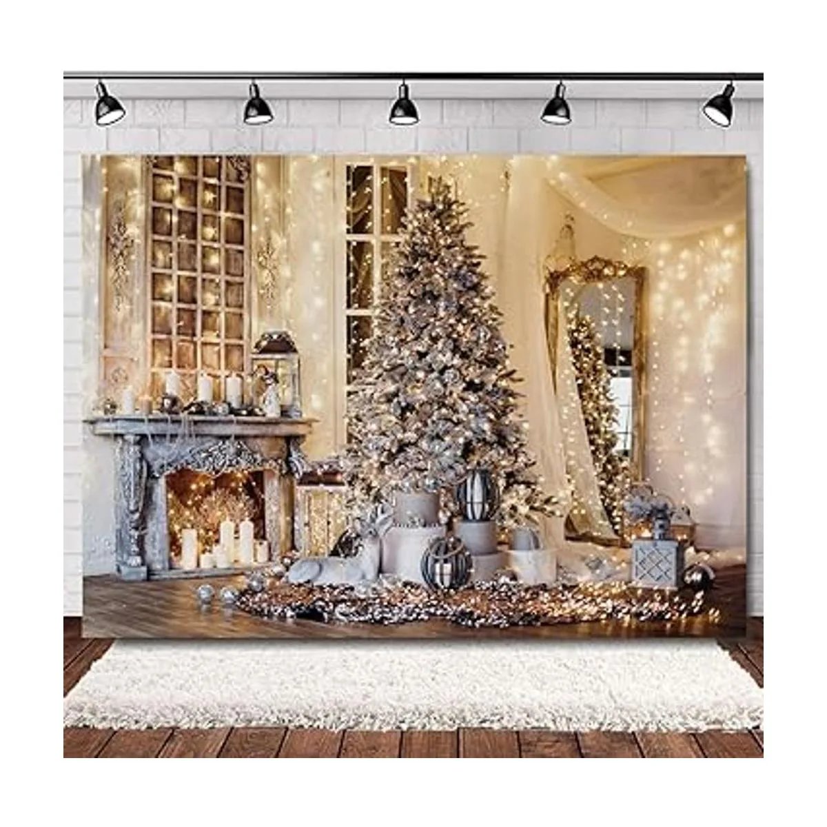 WOLADA Telones de fondo de Navidad de 15 x 10 pies para fotografía, árbol de Navidad, telón de fondo de escena de Navidad, telón de fondo de Navidad con chimenea, telón de fondo de fotos de Navidad, accesorios de estudio 11715