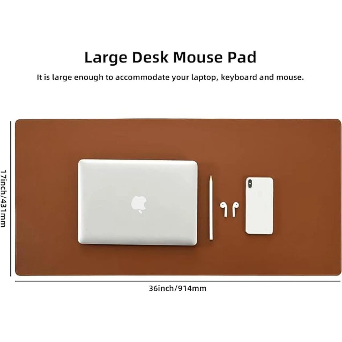 Wolaile Alfombrilla de mouse grande de piel sintética de 36 x 17 pulgadas, impermeable, antideslizante, protector de escritorio, accesorio de escritorio de oficina, color marrón