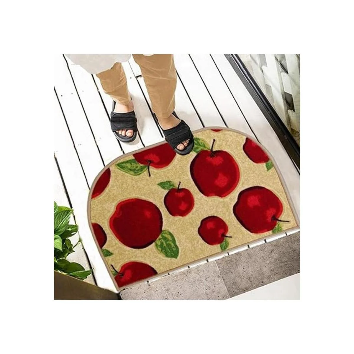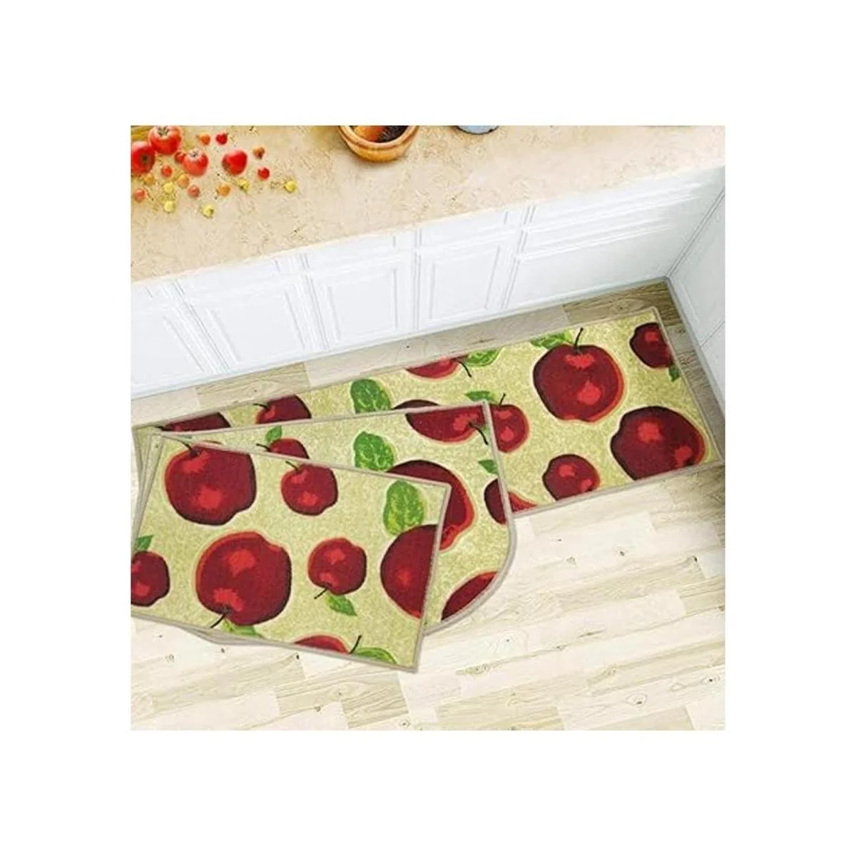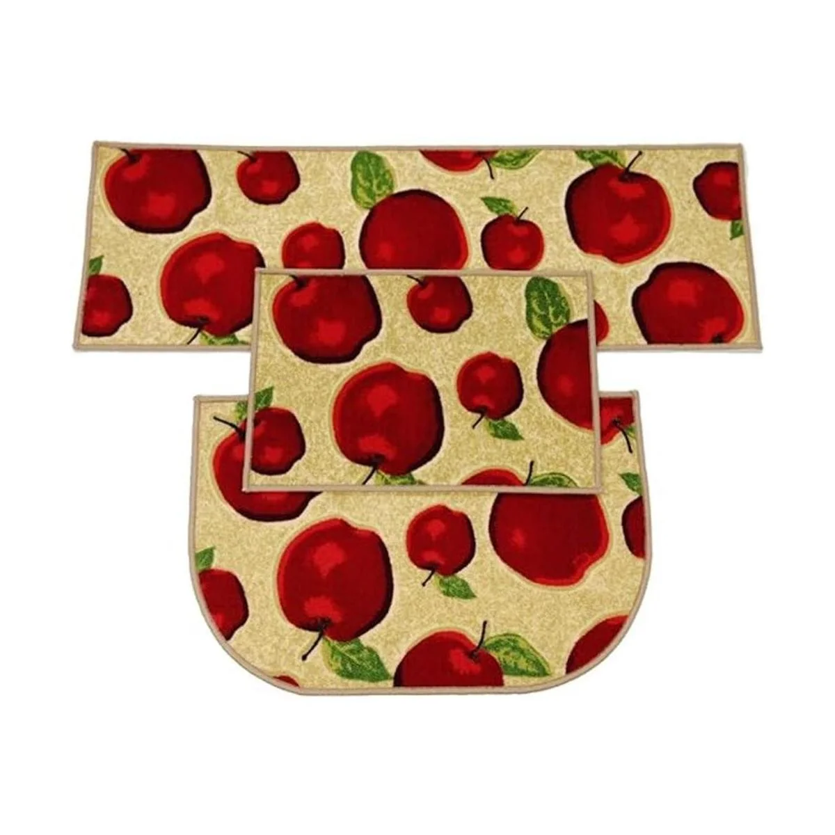 Wolala Home Juego de 3 piezas de goma antideslizante y alfombra de cocina de manzana roja lavable a máquina en forma de D felpudo de baño con almohadillas finas 3 piezas, multi