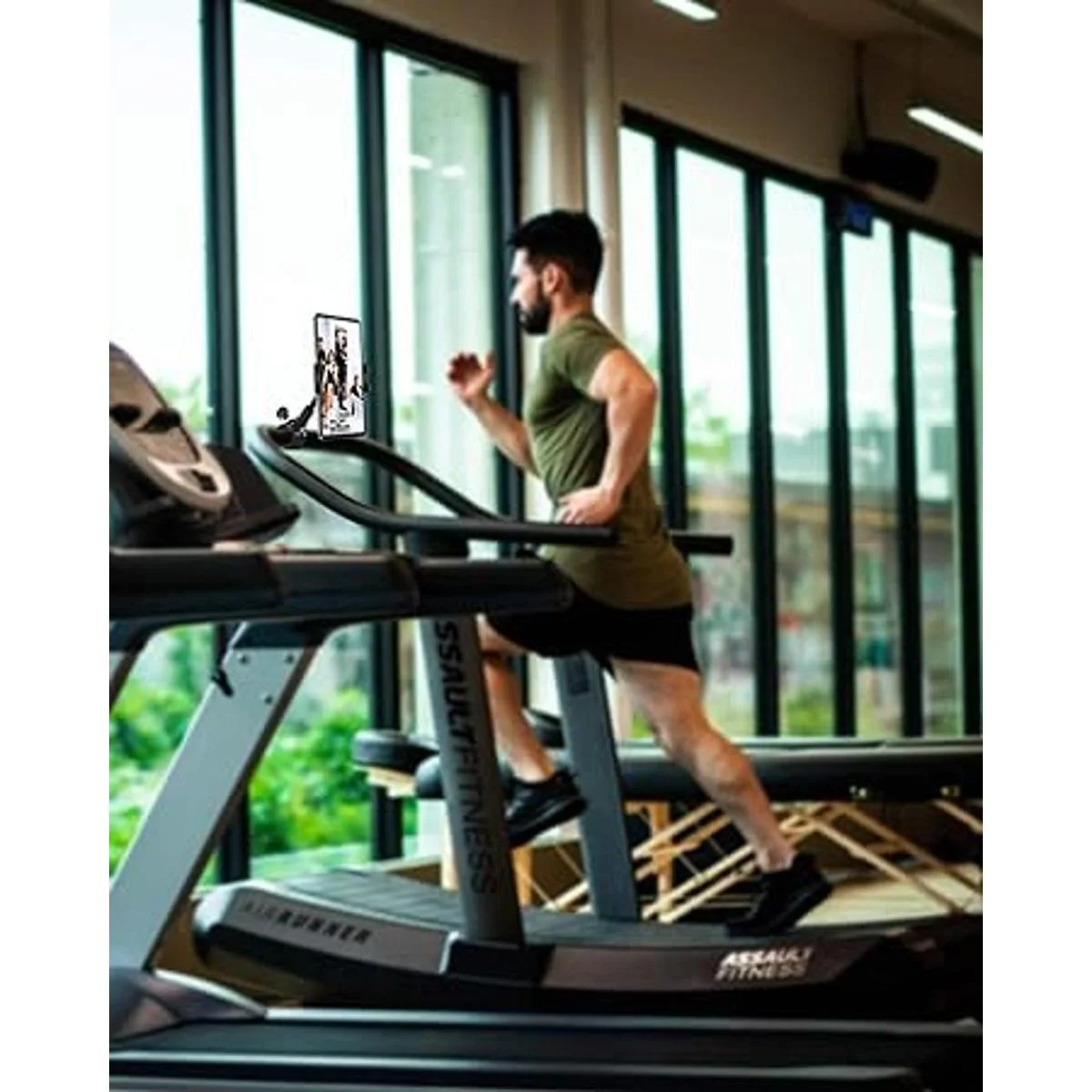 Un buen compañero de fitness Este soporte para tablet de cinta de correr puede mantener la tableta a la distancia adecuada de tus ojos. El diseño ajustable te proporciona el mejor ángulo para ver video de instrucciones de fitness o programa de televisión. Ideal para seguir canales deportivos en tu tableta mientras haces ejercicio en una cinta de correr o equipo de entrenamiento cardiovascular de gimnasio con manubrio y máquinas de entrenamiento elíptico.