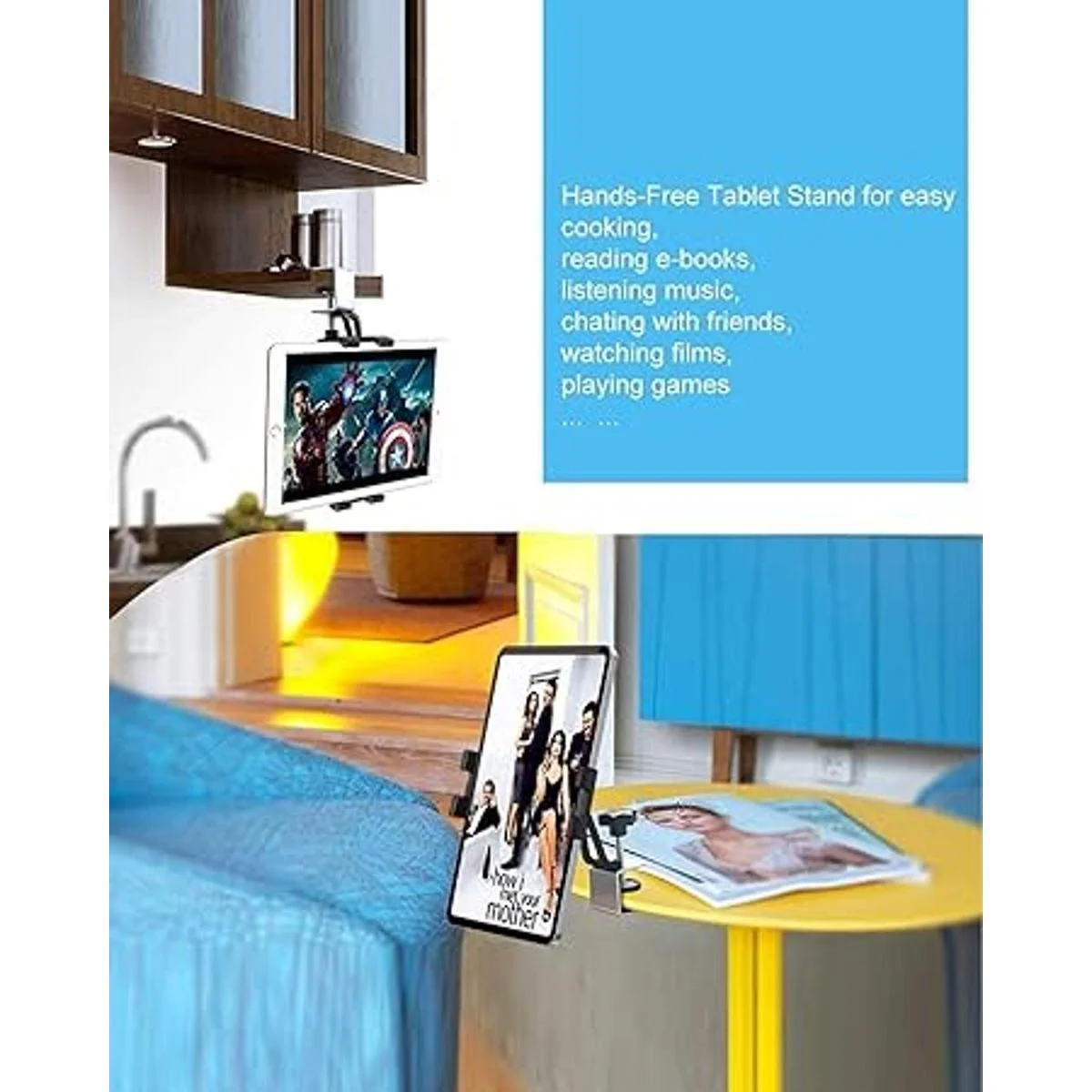 Soporte multiusos para tableta: se puede utilizar en varios lugares como cocinas, dormitorios, oficinas, mesas y al aire libre. Como es un tipo de clip, se puede utilizar para cualquier armario, estante o mesa con un grosor de 1.6 pulgadas o menos.