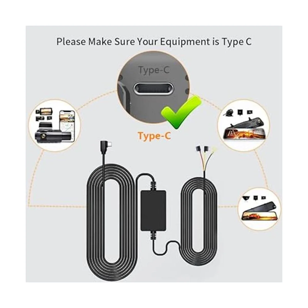 WOLFBOX Kit de alambre duro tipo C para cámara de tablero de espejo G840S, monitor de estacionamiento con conectores de varios tamaños
