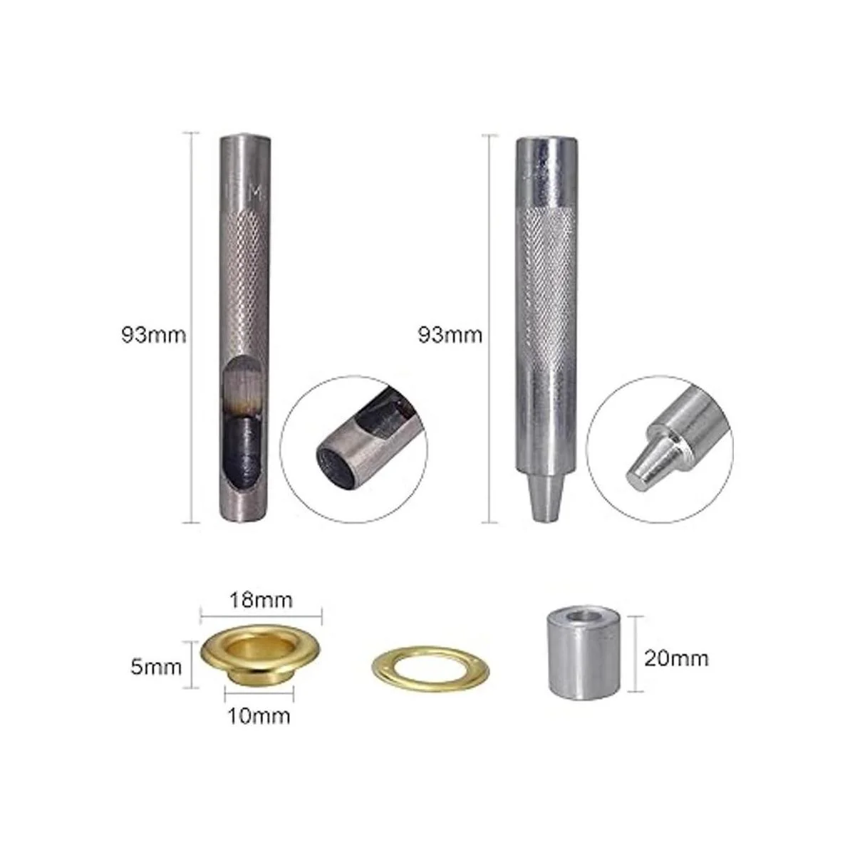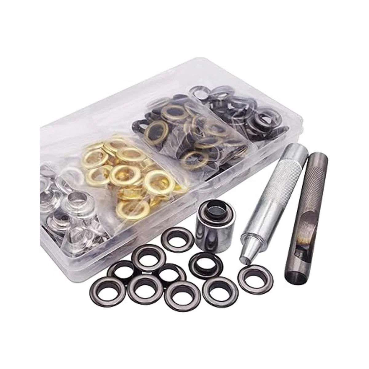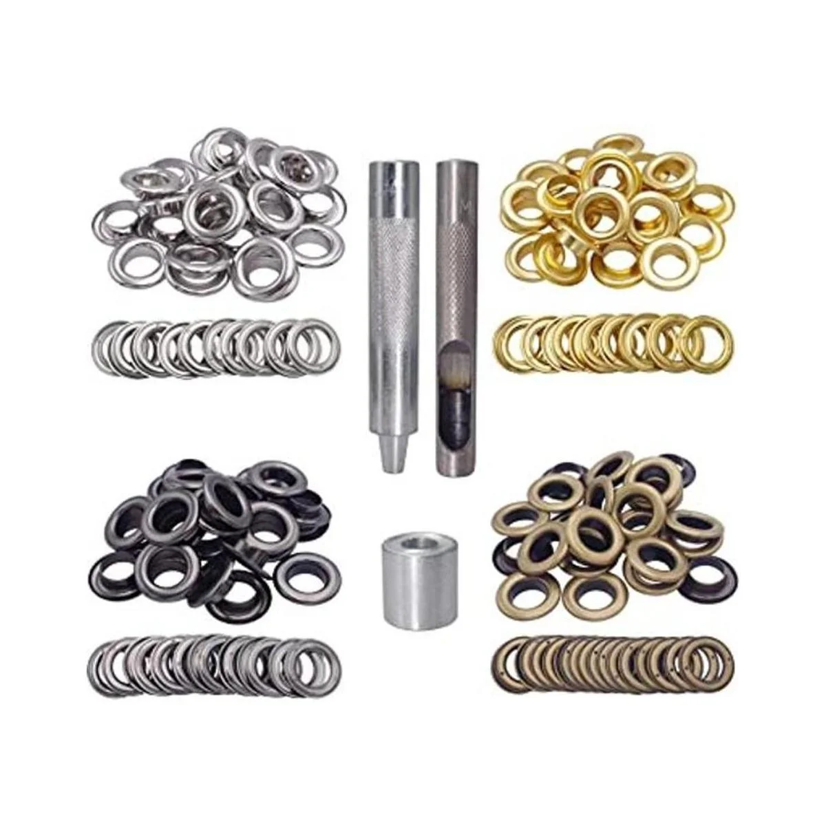 Wolfride Kit de ojales de latón de 0.394 in de diámetro interior, kit de ojales de tela, 100 juegos 4 colores