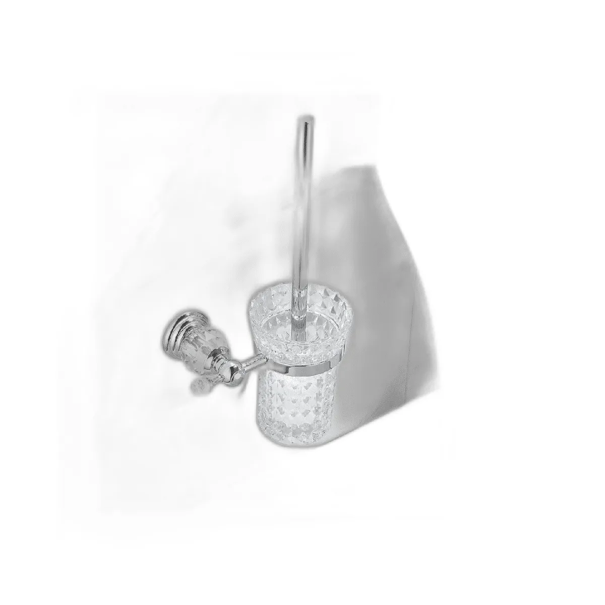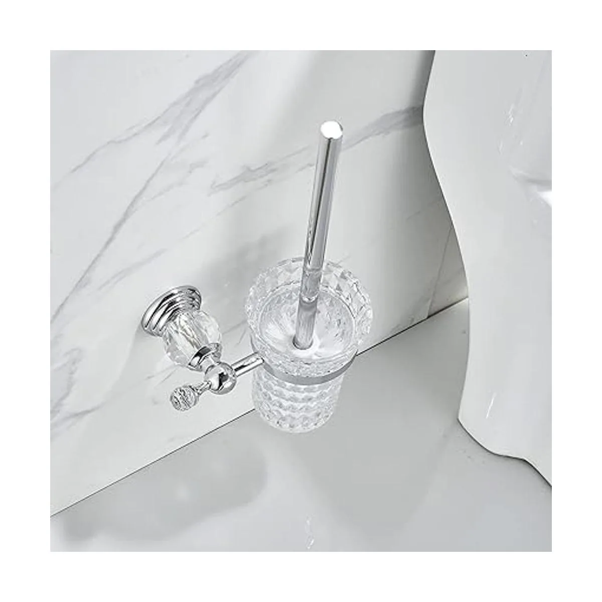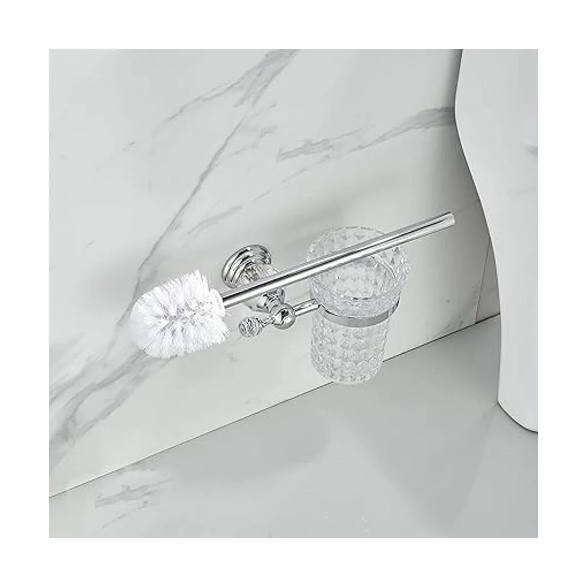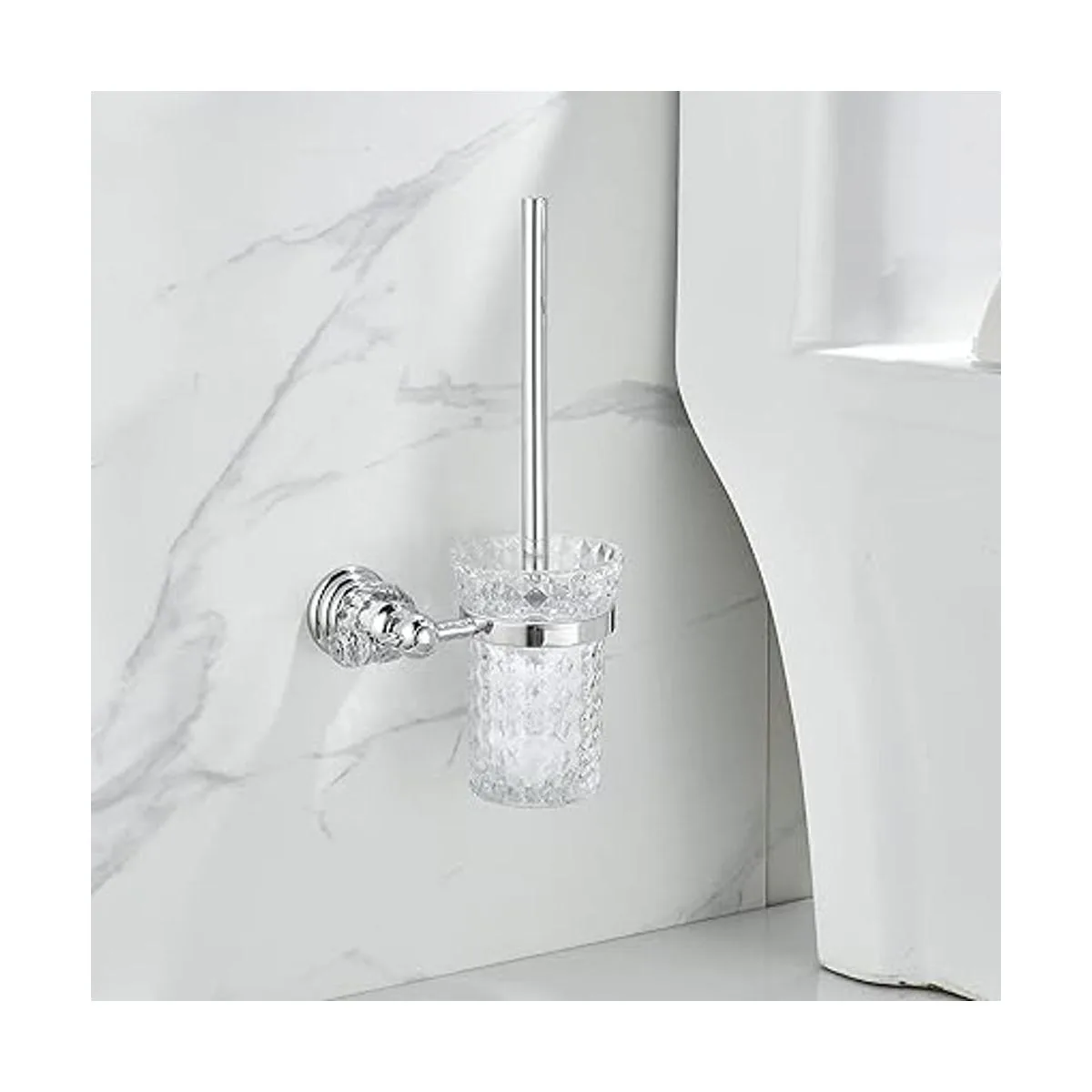 WOLIBEER Soporte para cepillos de inodoro de cristal, juego de tazas de inodoro cromadas con mango de cepillo plateado pulido montado en la pared para baño, diseño decorativo, ahorro de espacio.
