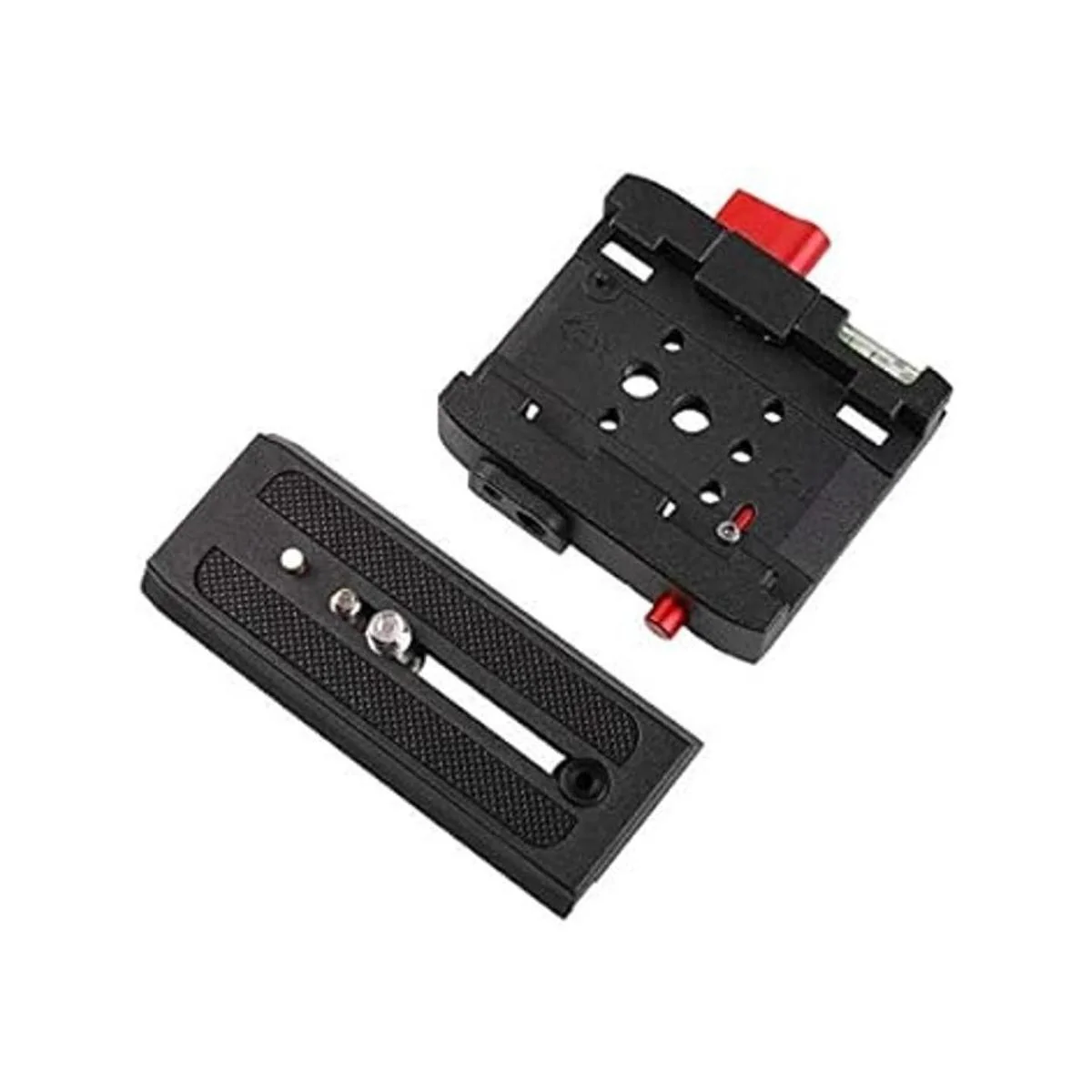 Hecho de aleación de aluminio, muy duradero. Equipado con agujero de tornillo de 1/4 y 3/8. Compatible con Manfrotto 501, 500AH, 701HDV, 577, etc.