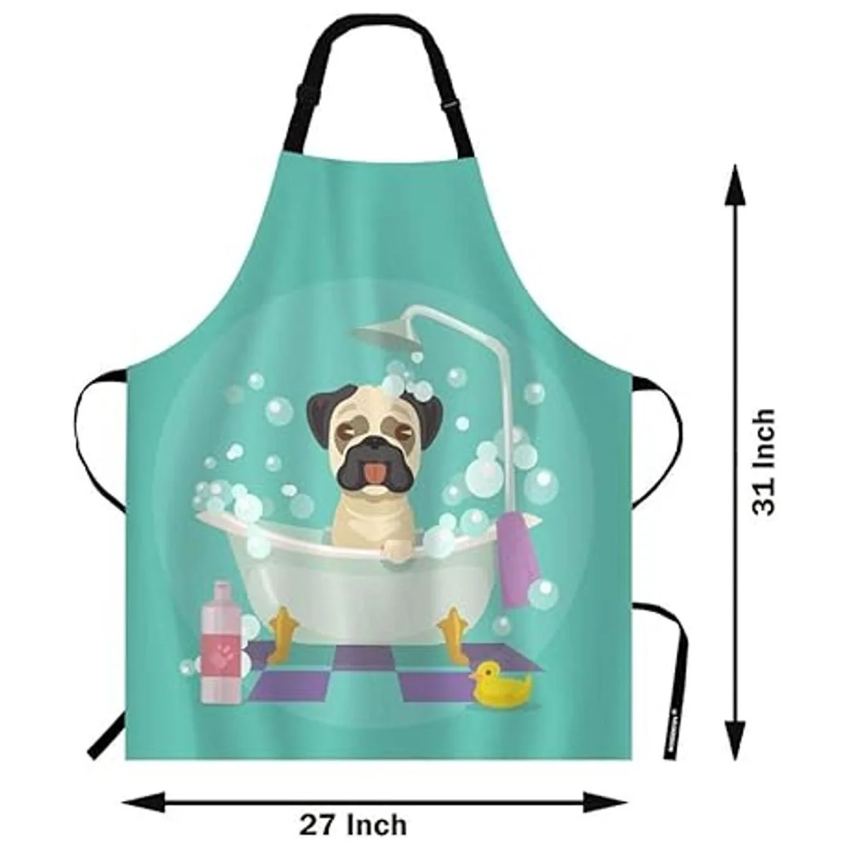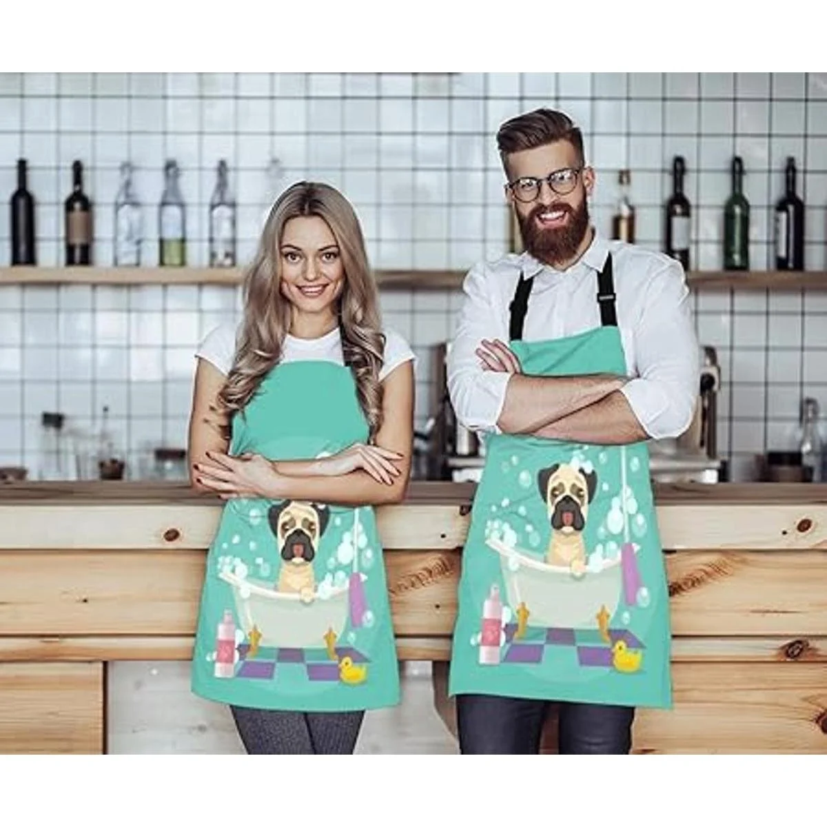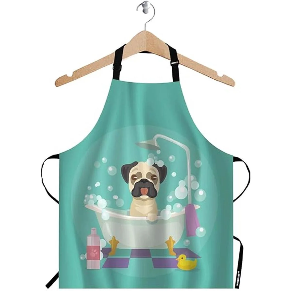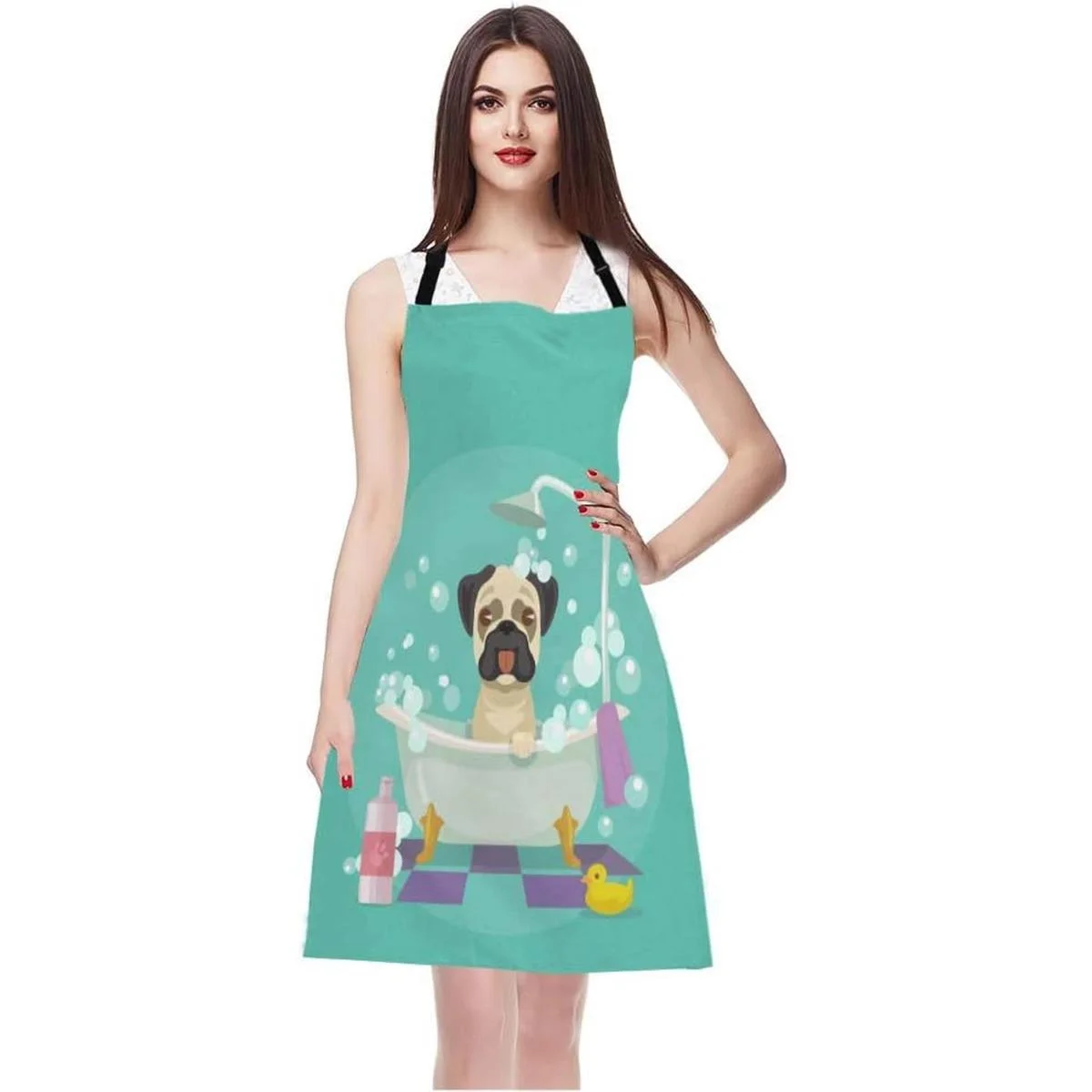 WONDERTIFY French Bulldog Apron,The Lovely Dog Bathed in The Bathtub Bib Apron with Adjustable Neck for Men Women,Suitable for Home Kitchen Cooking Waitress Chef Grill Bistro Baking BBQ Apron