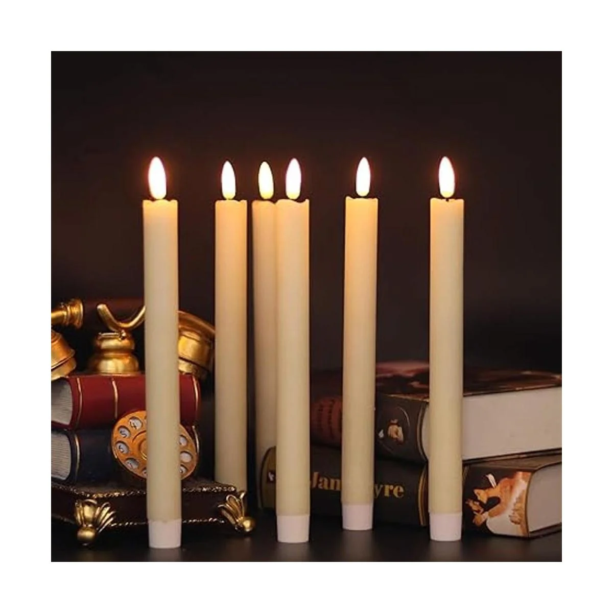 Contenido del paquete: recibirás 6 velas cónicas parpadeantes sin llama de color marfil, un manual de usuario idioma español no garantizado. Todas las velas están hechas de cera real, 0.8 pulgadas de diámetro con 9.6 pulgadas de altura