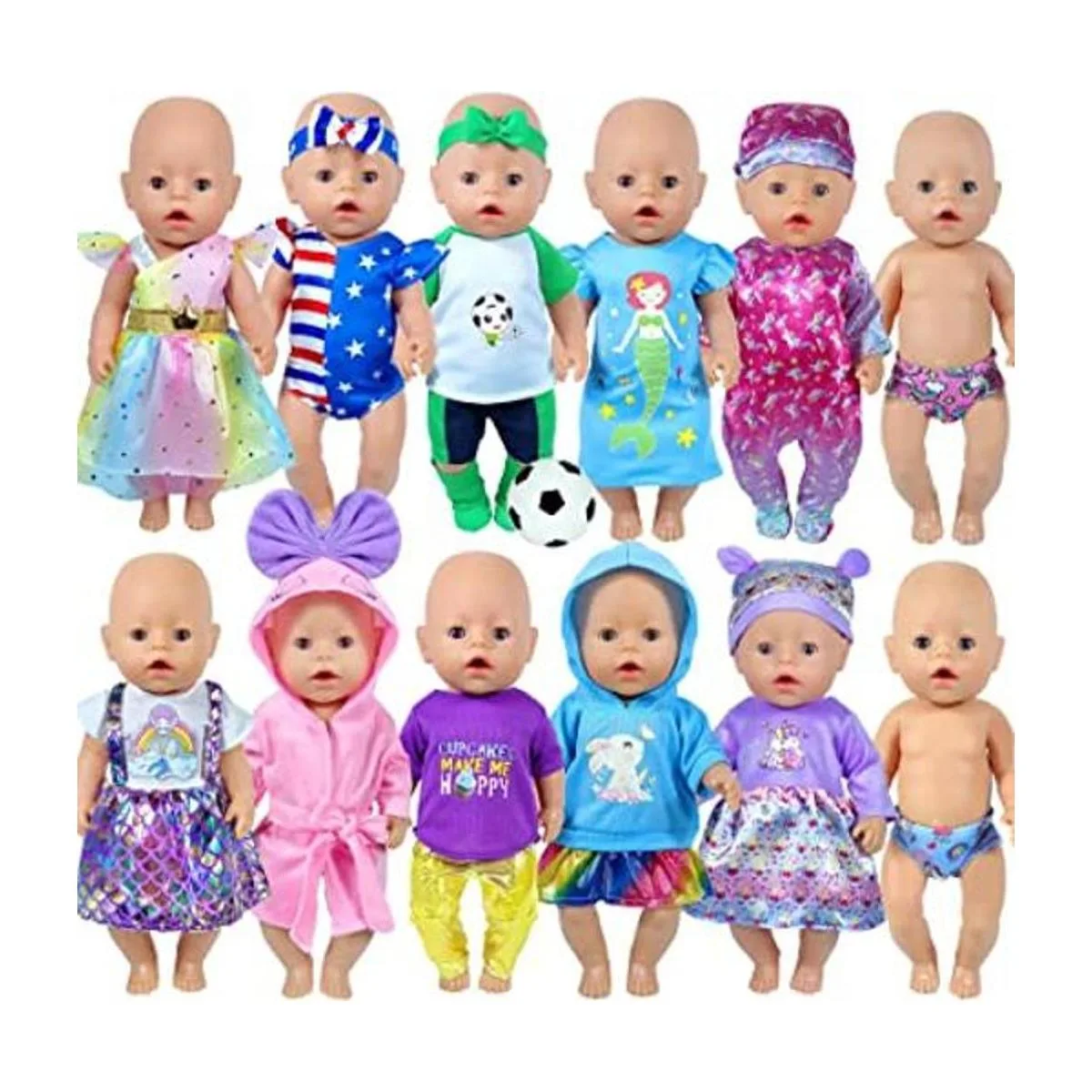 El paquete incluye: 5 vestidos, 2 blusas, 2 pantalones, 2 gorros, 2 bandas para el pelo, 1 traje de baño, 1 camisón, 1 pijama, 2 bragas, 1 fútbol y un par de calcetines. Aviso: la muñeca y los zapatos no están incluidos, solo vendemos ropa de muñeca. Hecho de materiales de tela de alta calidad que son lo suficientemente ligeros para que tu bebé acurruque la muñeca en el brazo y juegue durante todo el día. Son muy volados y llenos. Garantiza que la ropa de muñeca sea duradera y resistente a desgarros.