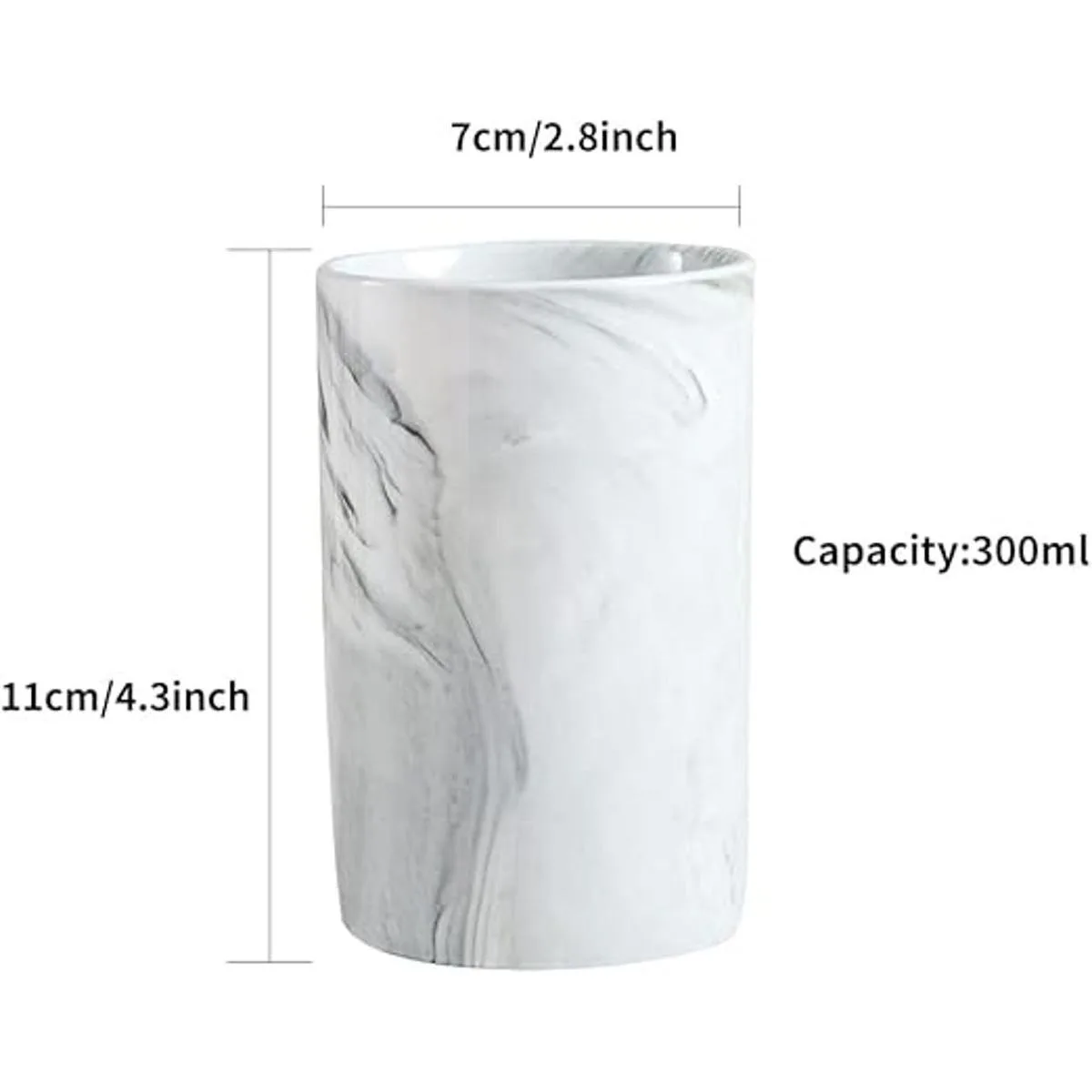 Perfect Design Size:7711cm, Weight:250g/pc, Capacity:300ml The toothbrush cup is made of highquality clay, which is environmentally friendly and durable. The toothbrush cup is covered with a marble pattern that is beautiful and stylish, and the outer edge of the toothbrush cup is very smooth and does not hurt the lips.