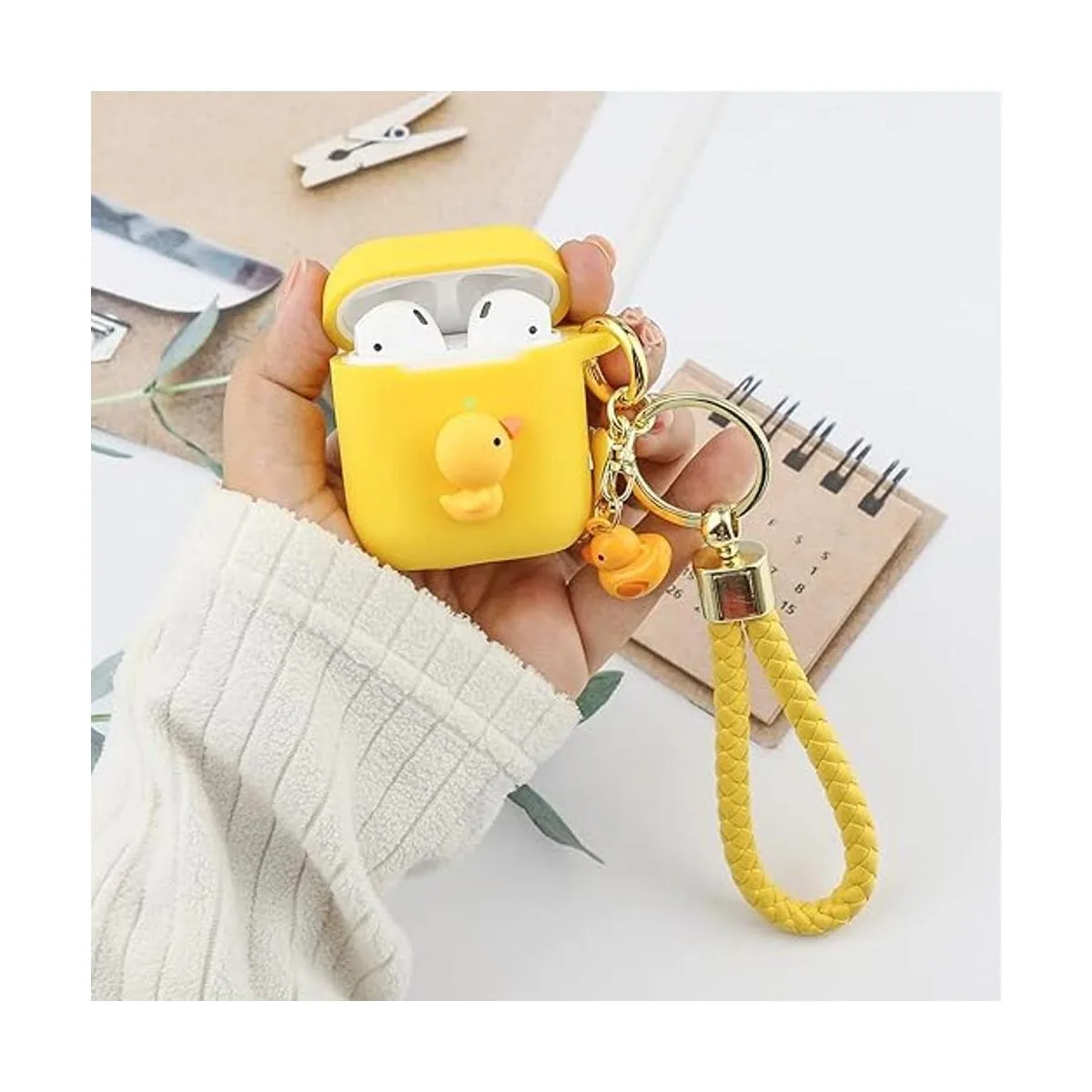 Wonhibo Bonita funda para Airpod de pato para mujer, funda de silicona amarilla Kawaii para Apple Airpods de 1 y 2 generación con llavero
