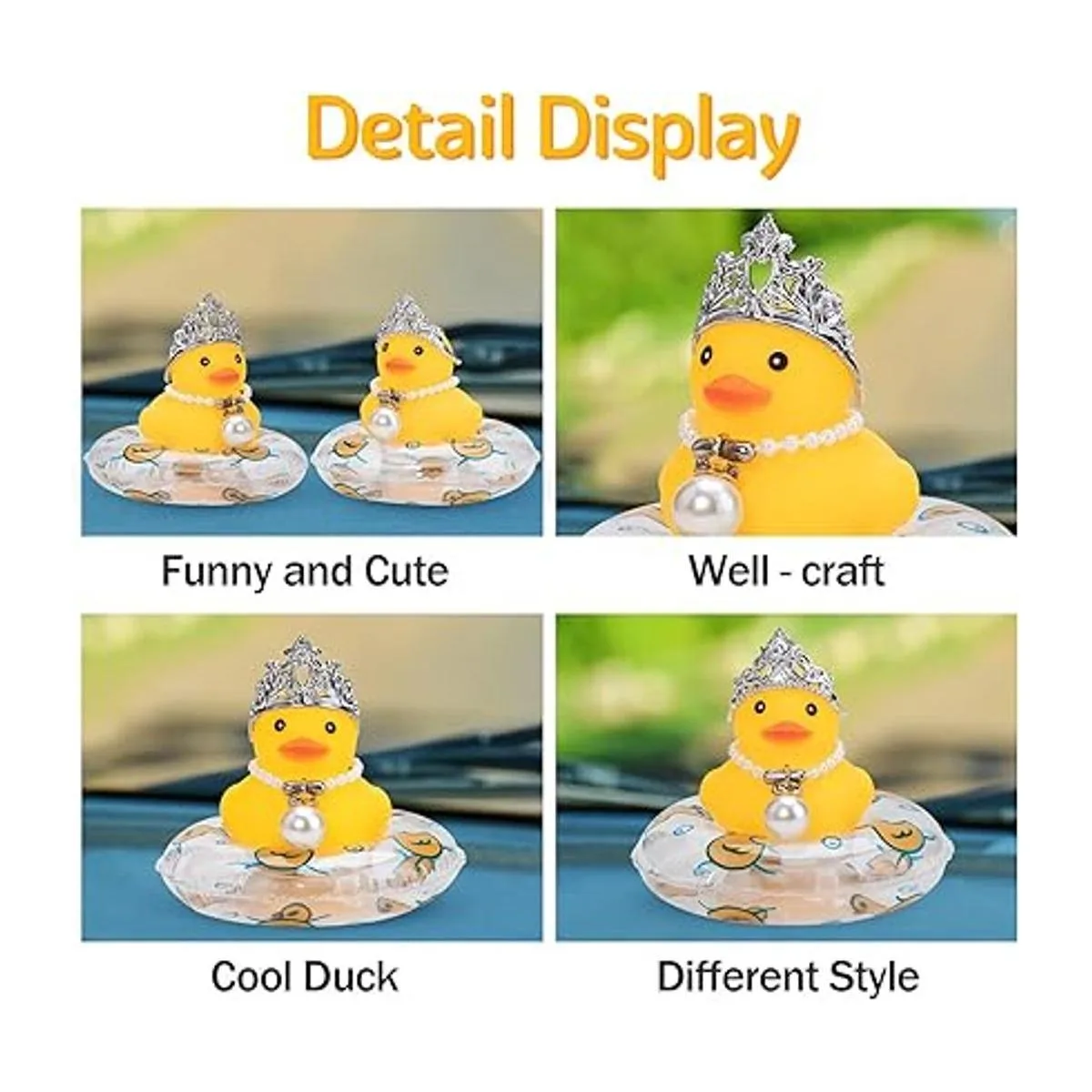 wonuu Adornos de goma de pato para automóvil, decoración de tablero de automóvil con mini corona y collar