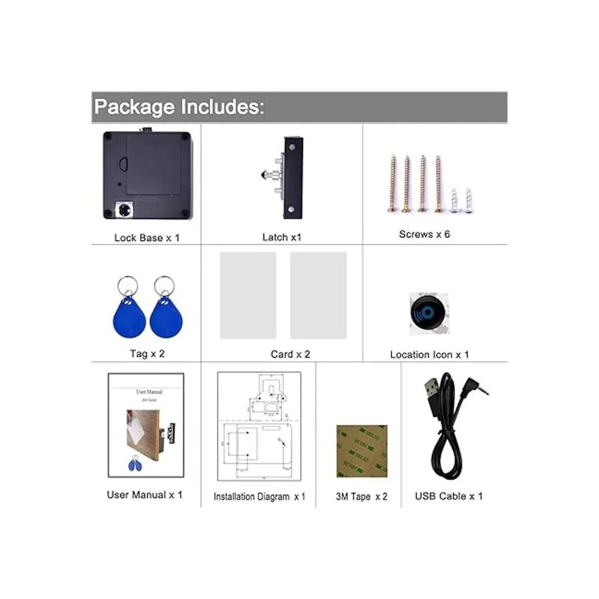 WOOCH Cerradura electrónica de gabinete, cerradura RFID oculta con cable USB para armario de madera, cajón y armario