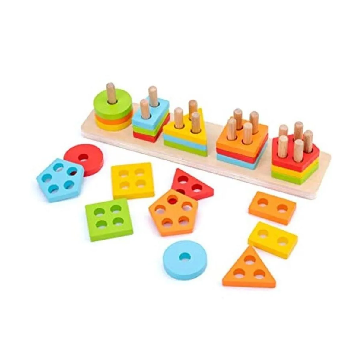 WOOD CITY Juguete de clasificación y apilamiento de madera, juguetes clasificadores de formas para niños pequeños, apilador de reconocimiento de color Montessori, rompecabezas de bloques educativos tempranos para niños y niñas de 1, 2, 3 años 5 formas
