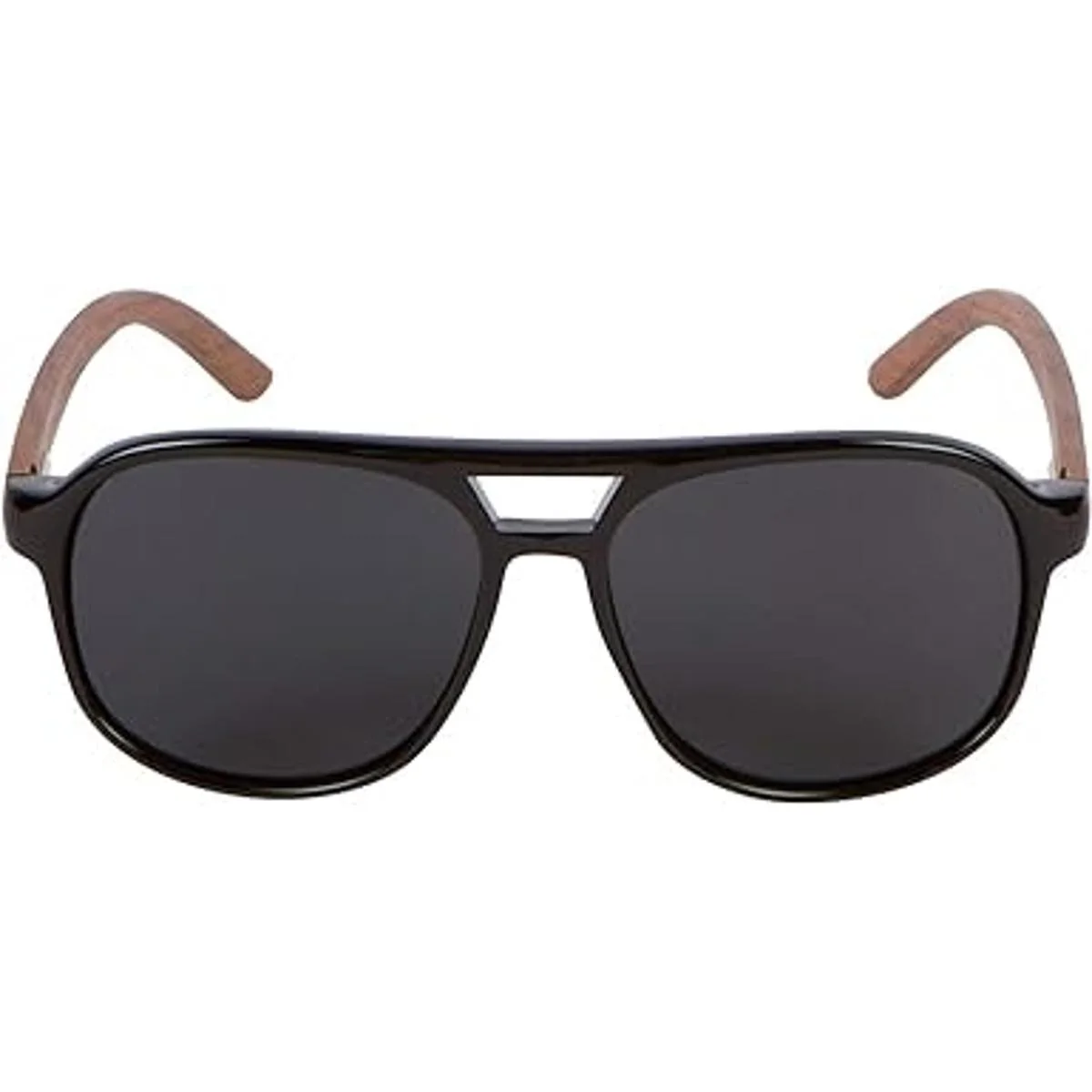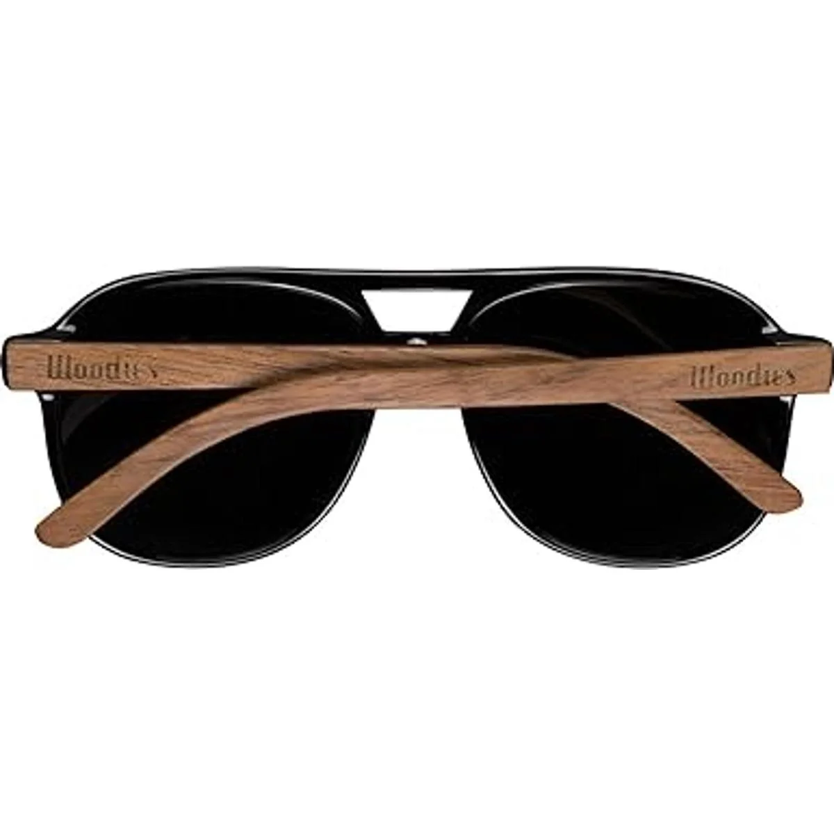 Woodies Gafas de sol estilo aviador de madera de nogal con lente polarizada negra para hombre, Negro, M