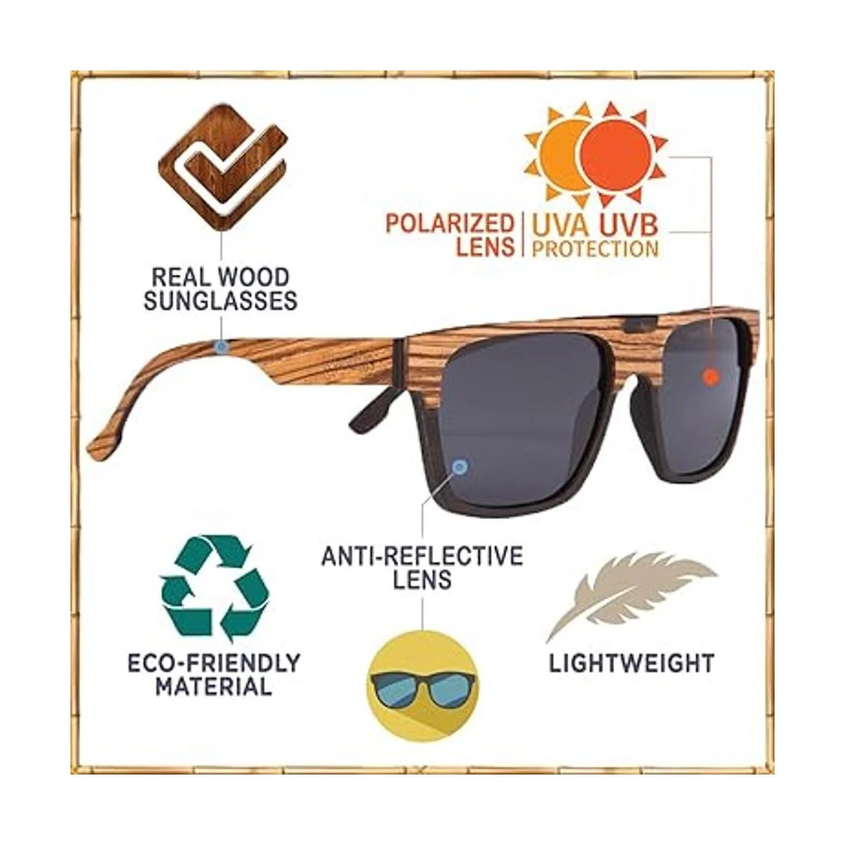 Hecho a mano con madera de cebra real 50 más ligero que las gafas de sol normales