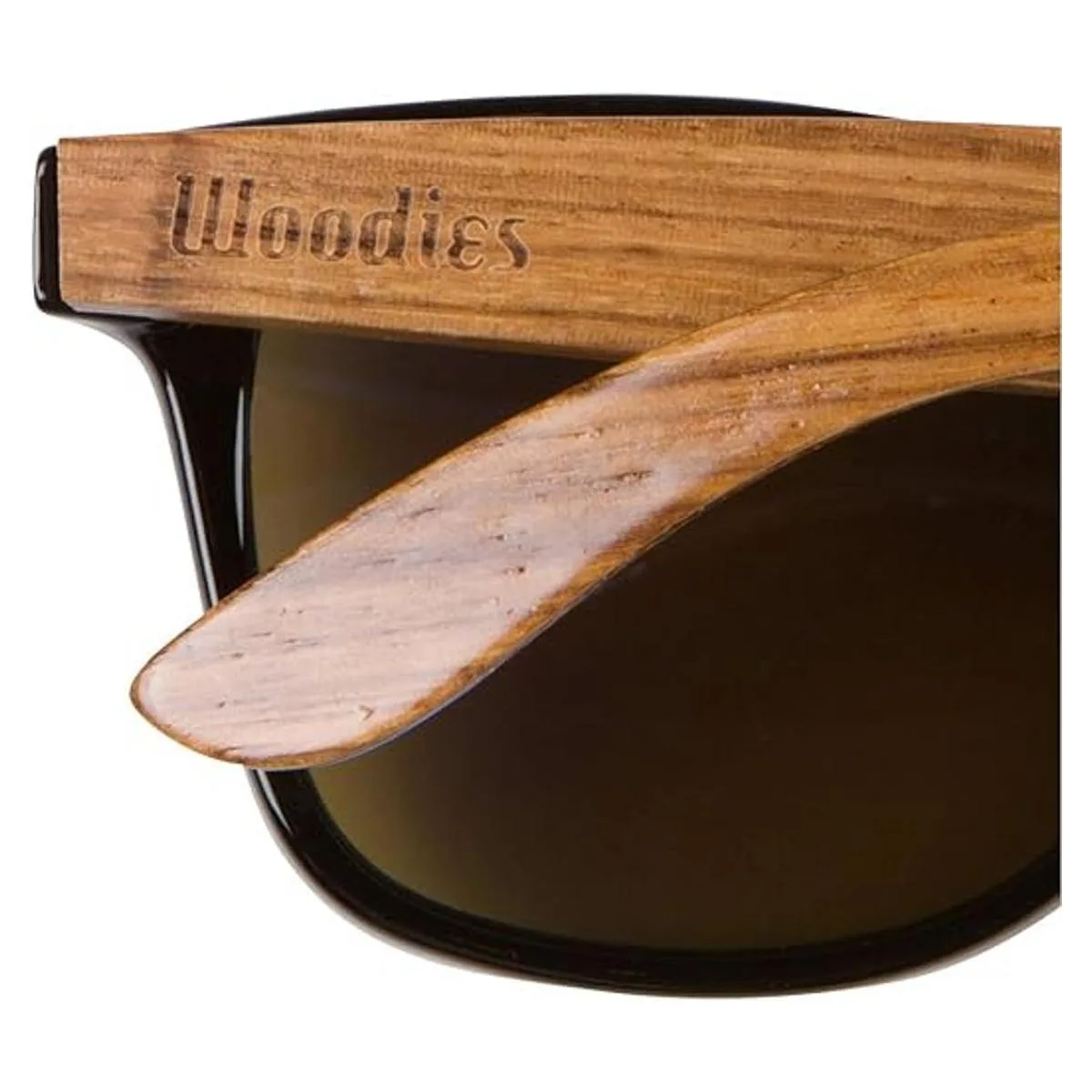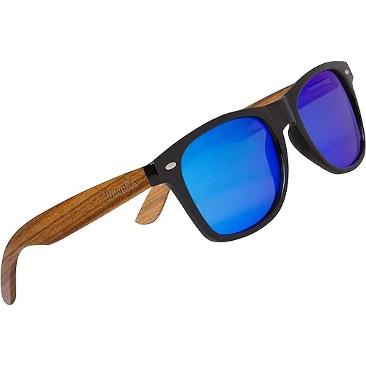 WOODIES Lentes de sol polarizados de madera de cebra para hombres y mujeres, lentes polarizadas azul hielo y marco de madera real, protección 100 rayos UVAUVB, Negro, M