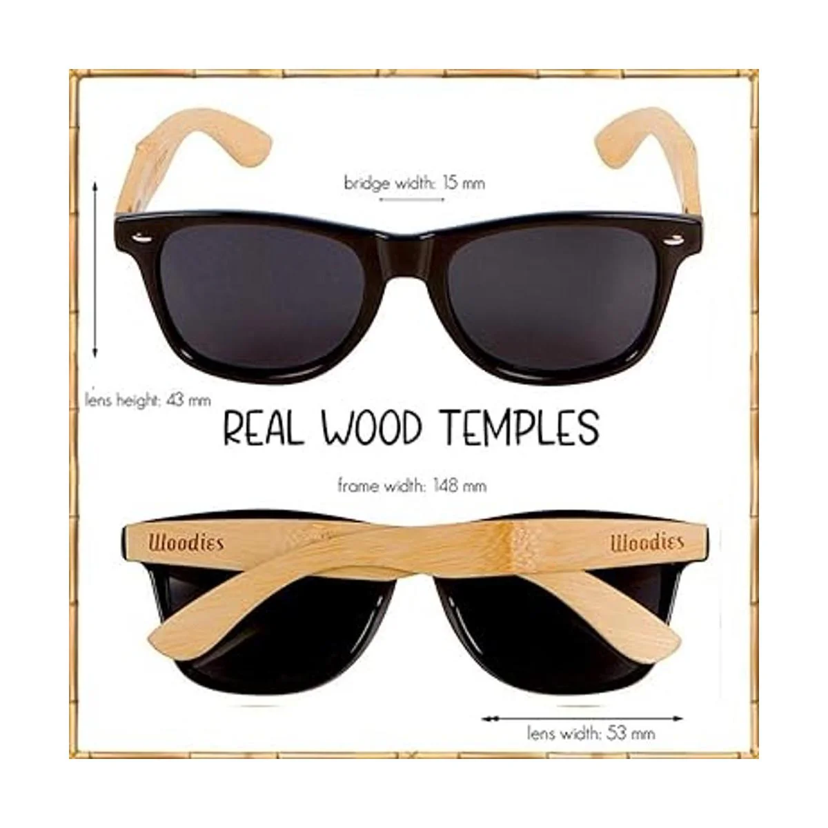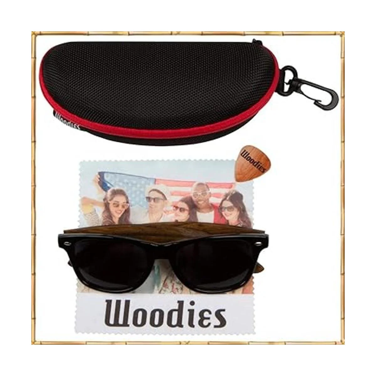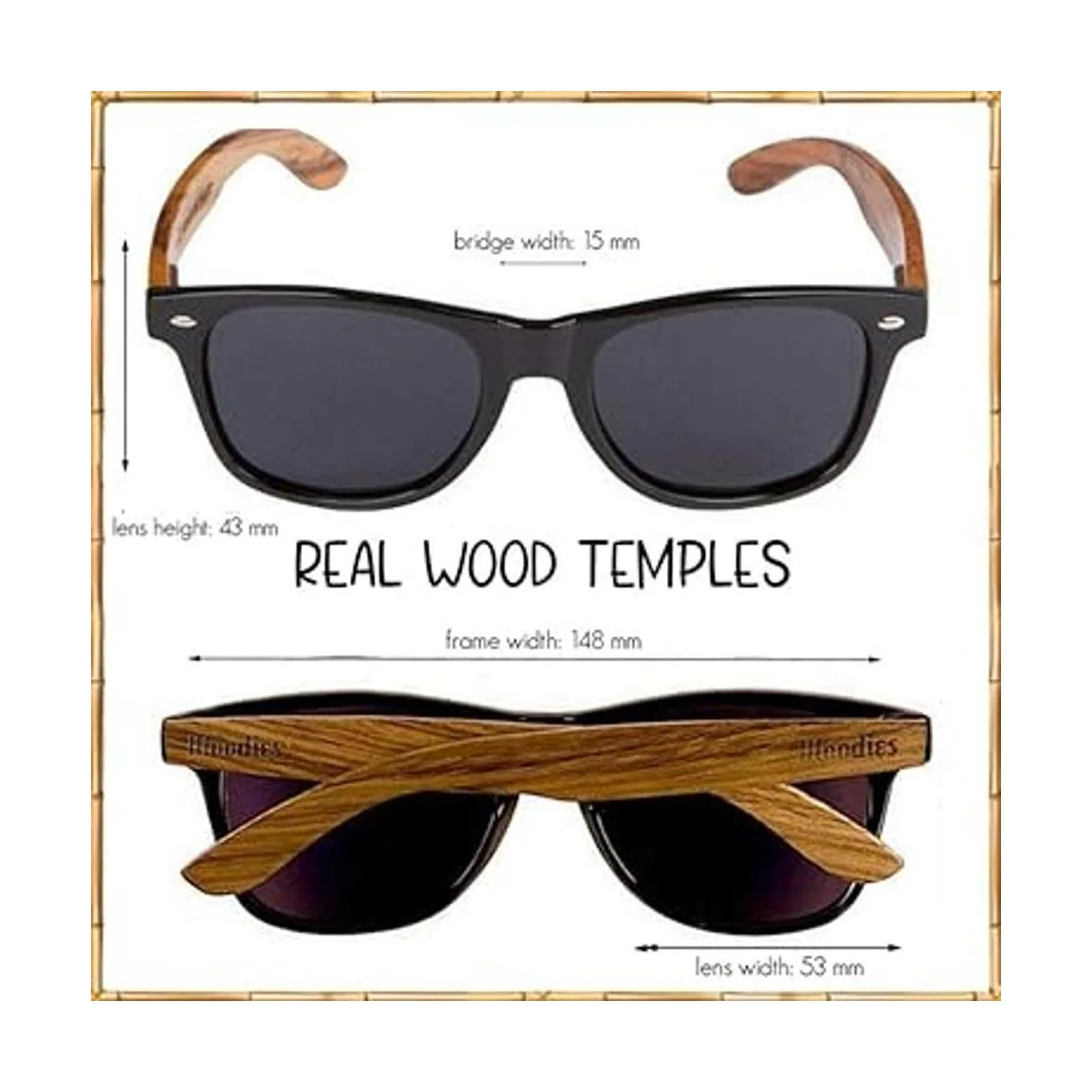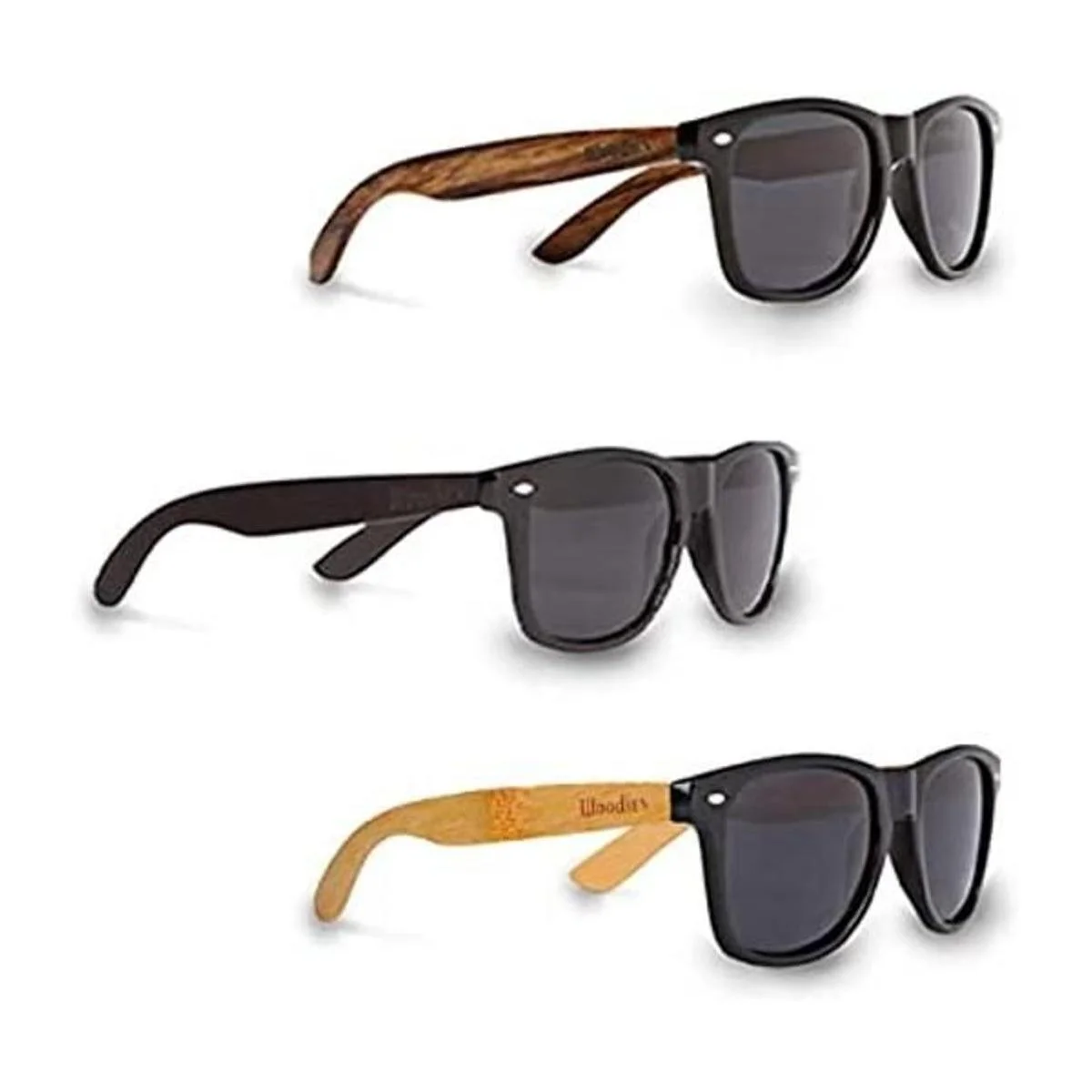 WOODIES Tres lentes de sol polarizados a granel Gafas de sol de madera de nogal, madera de ébano y madera de bambú para hombres y mujeres Lentes polarizadas negras y marco de madera real Protección 100 rayos UVAUVB, Negro, M