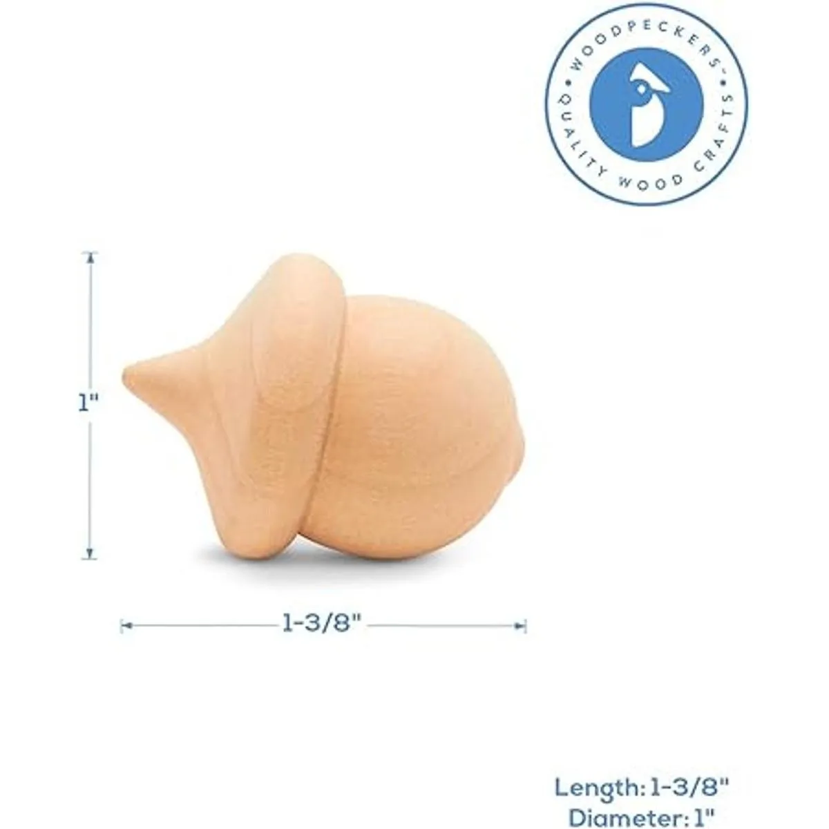 Woodpeckers Bellotas de madera de 114 pulgadas, bolsa de 50 piezas de madera natural para contar y clasificar