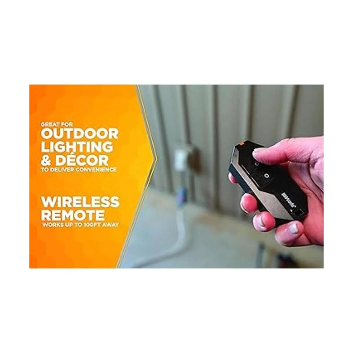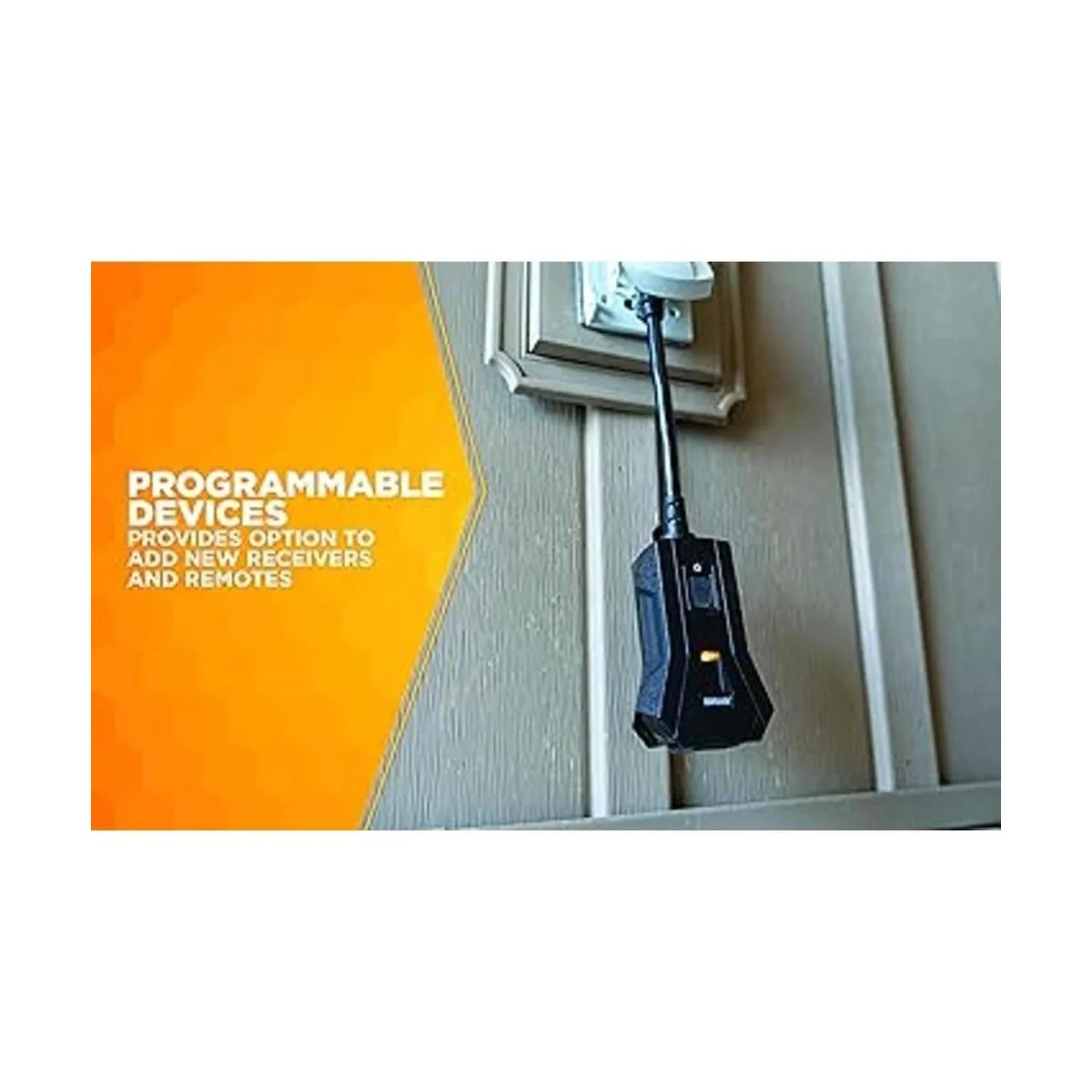 Woods 50125WD Kit de salida de control remoto inalámbrico para interiorexterior, incluye 1 toma de tierra 3 puntas con un mando a distancia emparejable, certificado CSA, compatible con FCC, negro