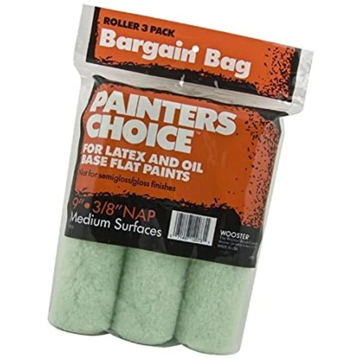 Wooster Brush R7289 Painters Choice Cubierta de rodillo para siesta de 38 pulgadas, paquete de 3, 9 pulgadas, verde