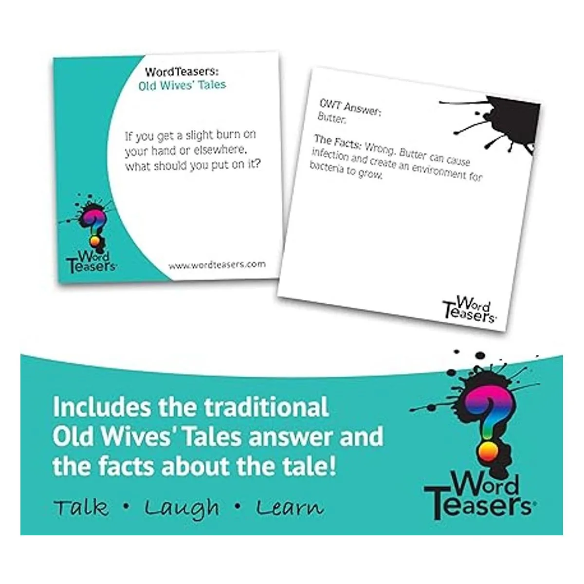 ? WORD TEASERS Old Wives’ Tales Iniciadores de conversación Juegos de trivia basados en superstición para familiares y amigos, tarjetas de conversación y divertido juego familiar 150 cartas de trivia para la noche de juegos