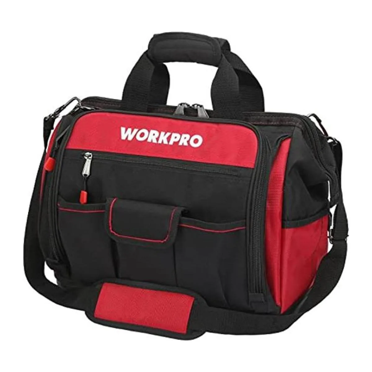 WORKPRO Bolsa de herramientas de boca ancha superior de 16 pulgadas con base de goma resistente al agua, multicompartimento, 46 bolsillos, para organizador de herramientas y almacenamiento, W081122A
