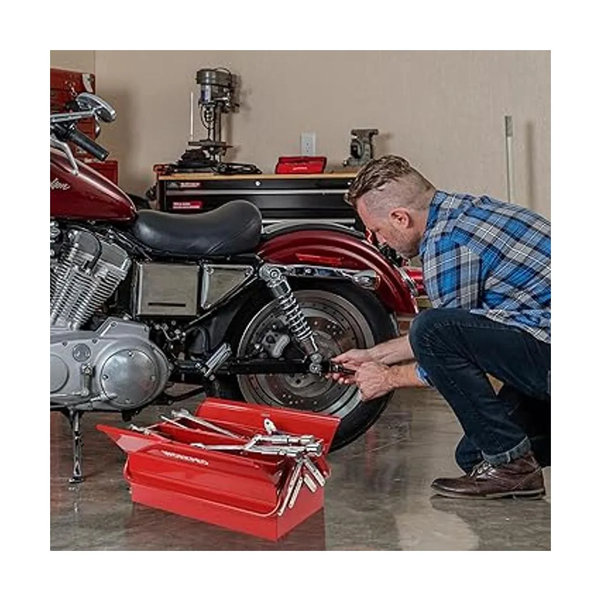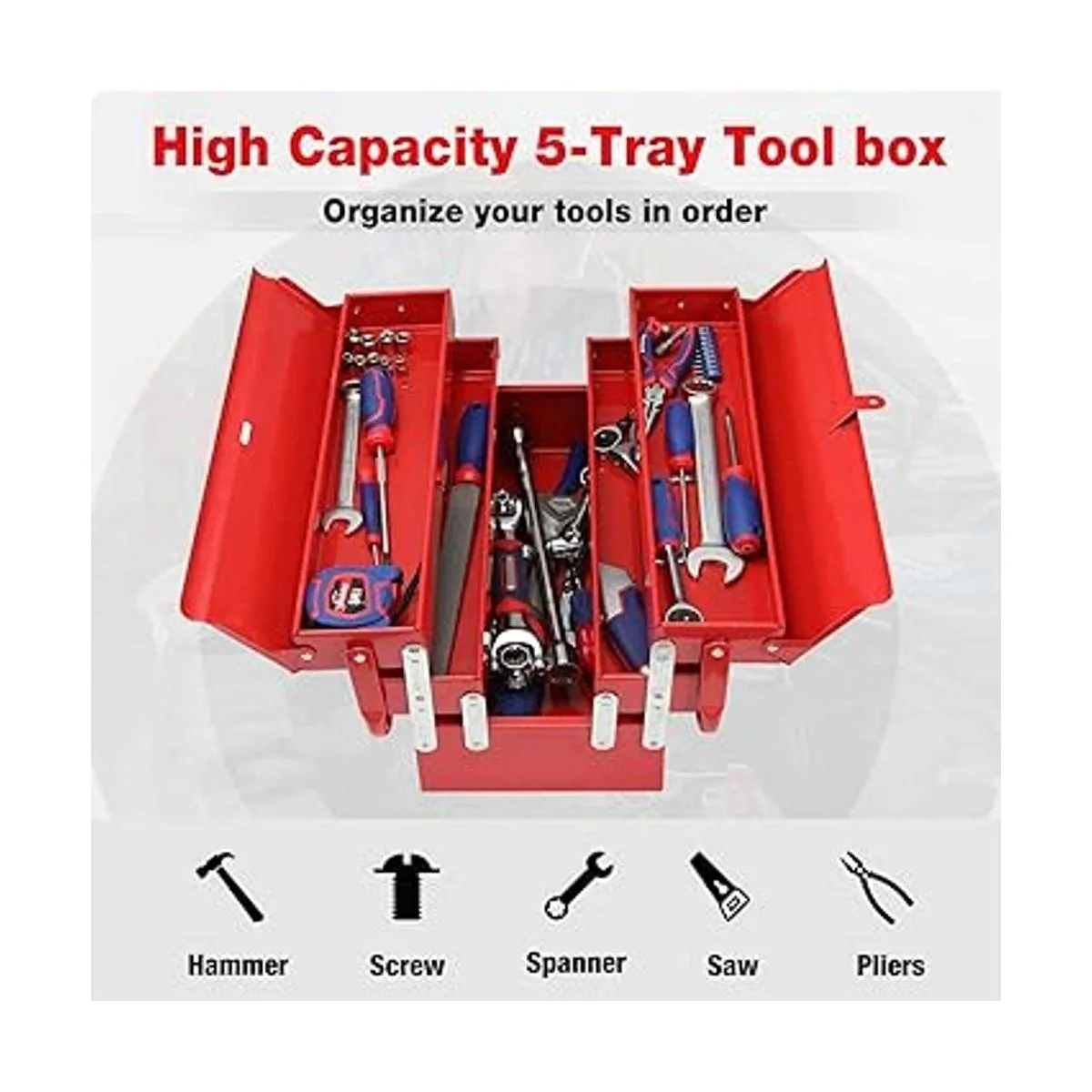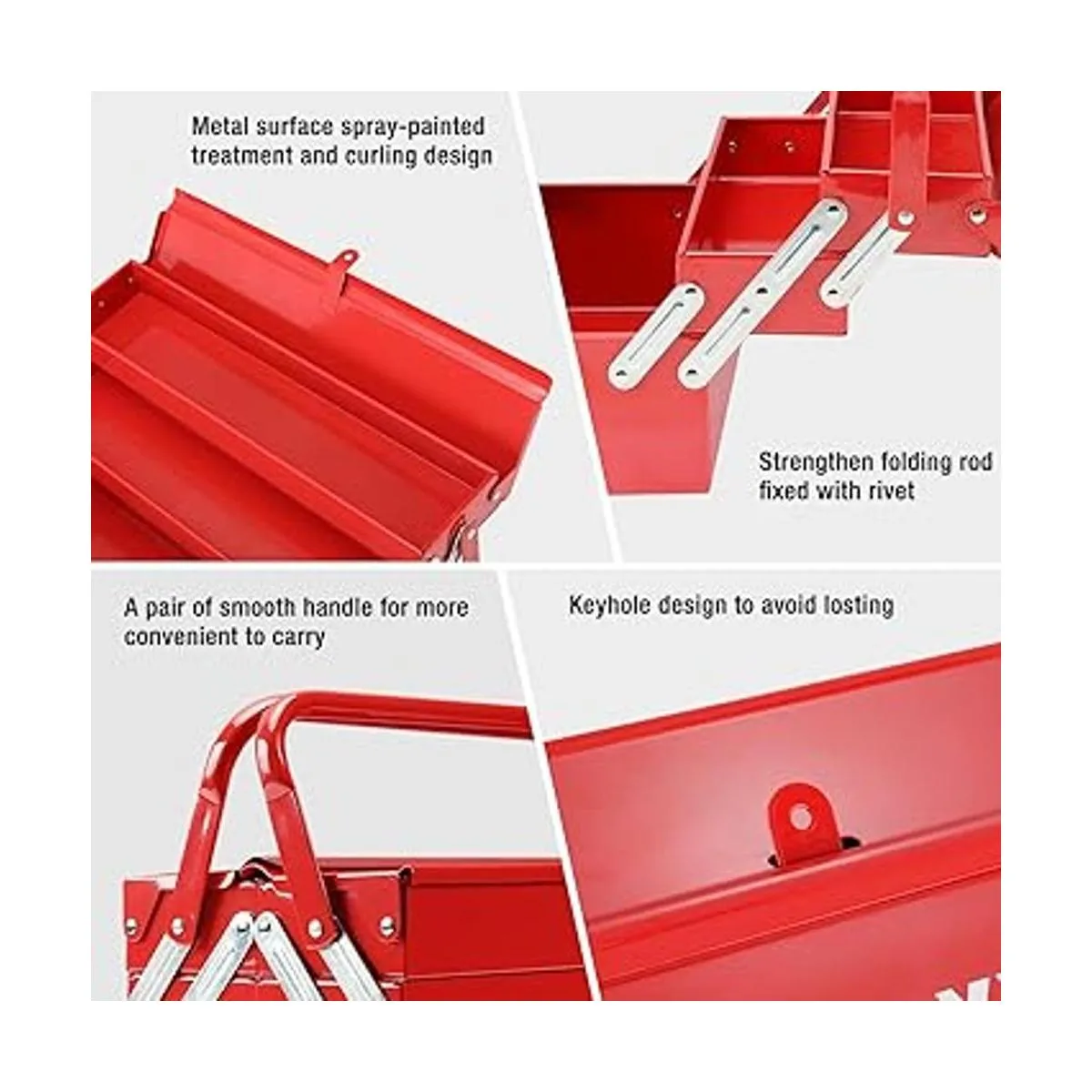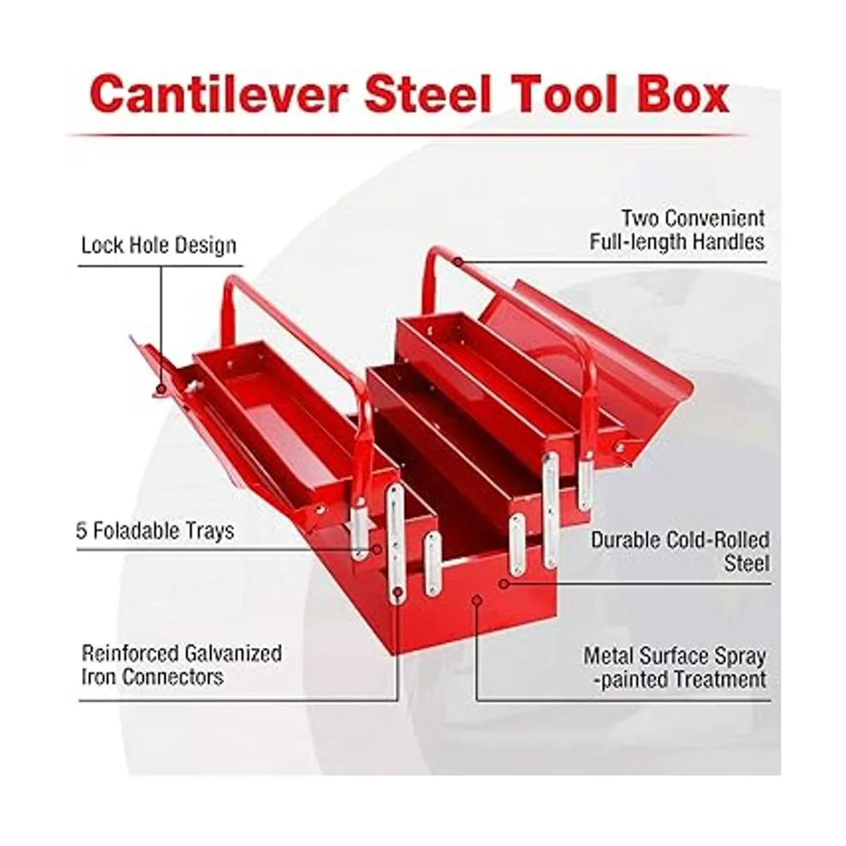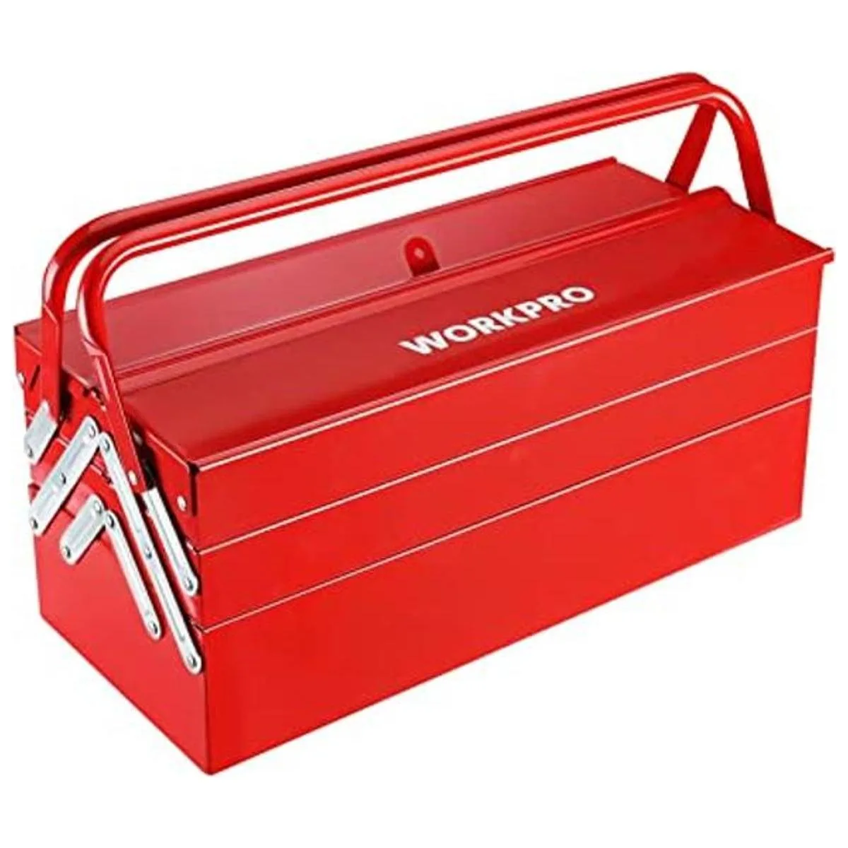 WORKPRO Caja de herramientas de metal, caja de almacenamiento plegable en voladizo de 18 pulgadas, caja de almacenamiento roja de 3 capas y 5 bandejas, organizador de herramientas multifunción, rojo