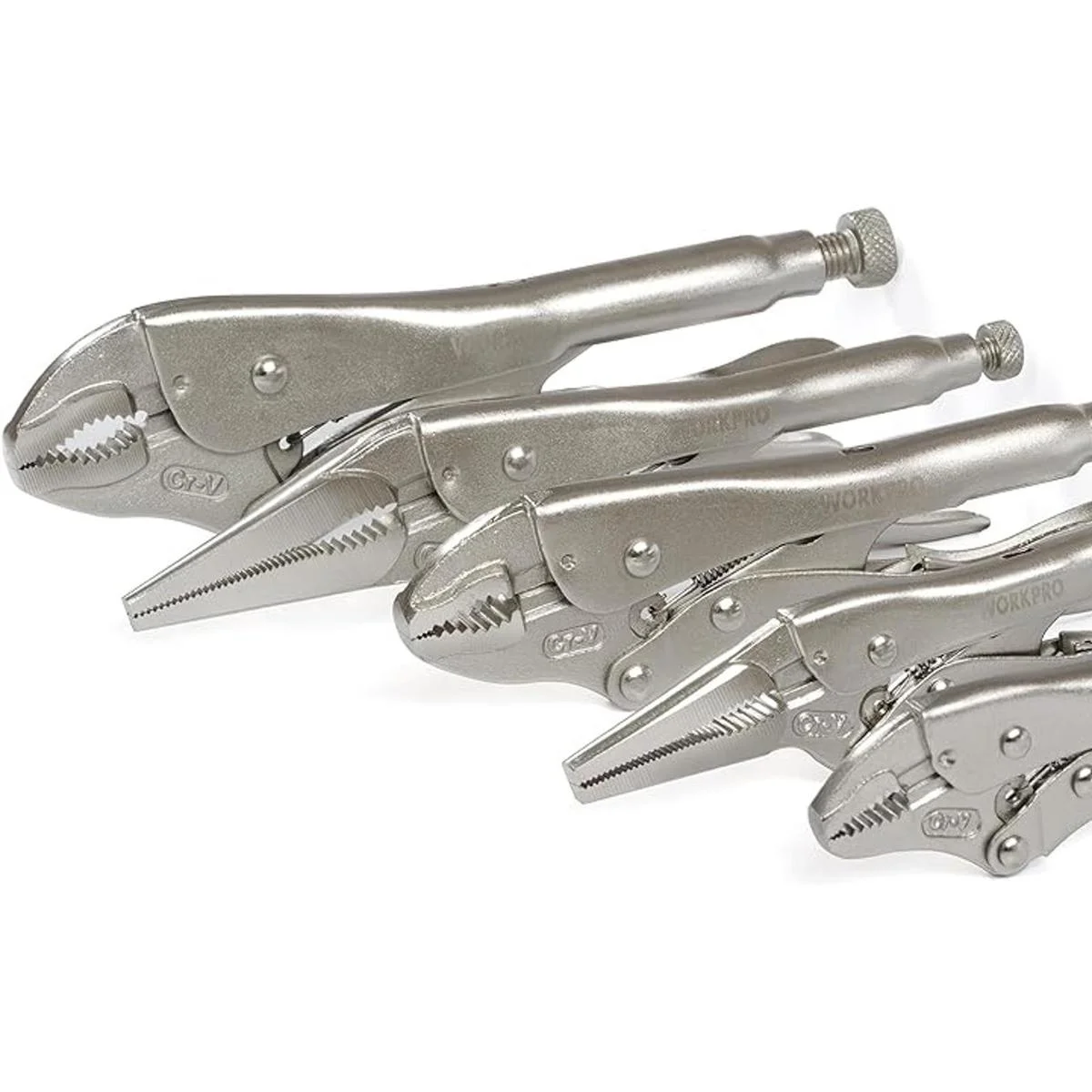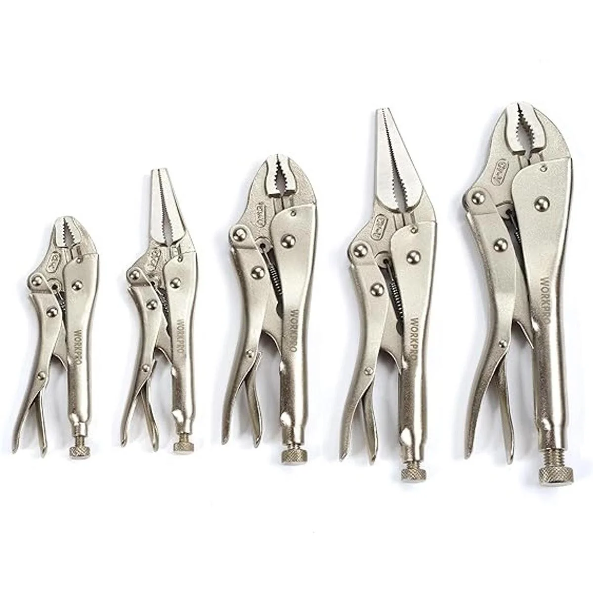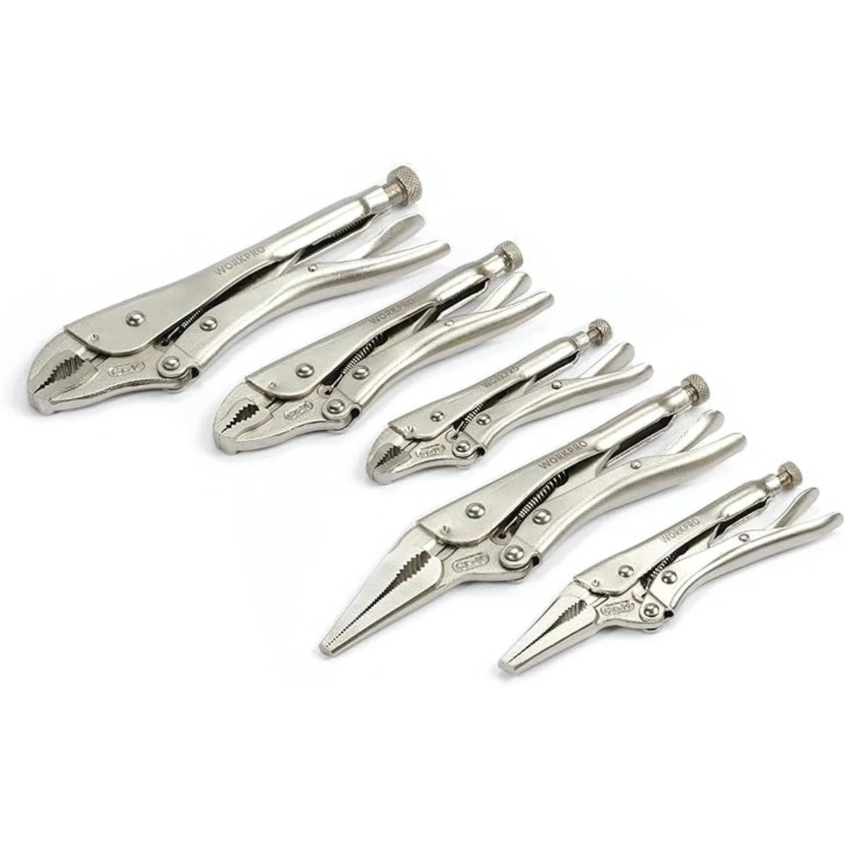 WORKPRO Juego de 5 alicates de bloqueo alicates de mandíbula curvada de 5710 pulgadas, alicates de punta larga de 6.59 pulgadas, W001316A