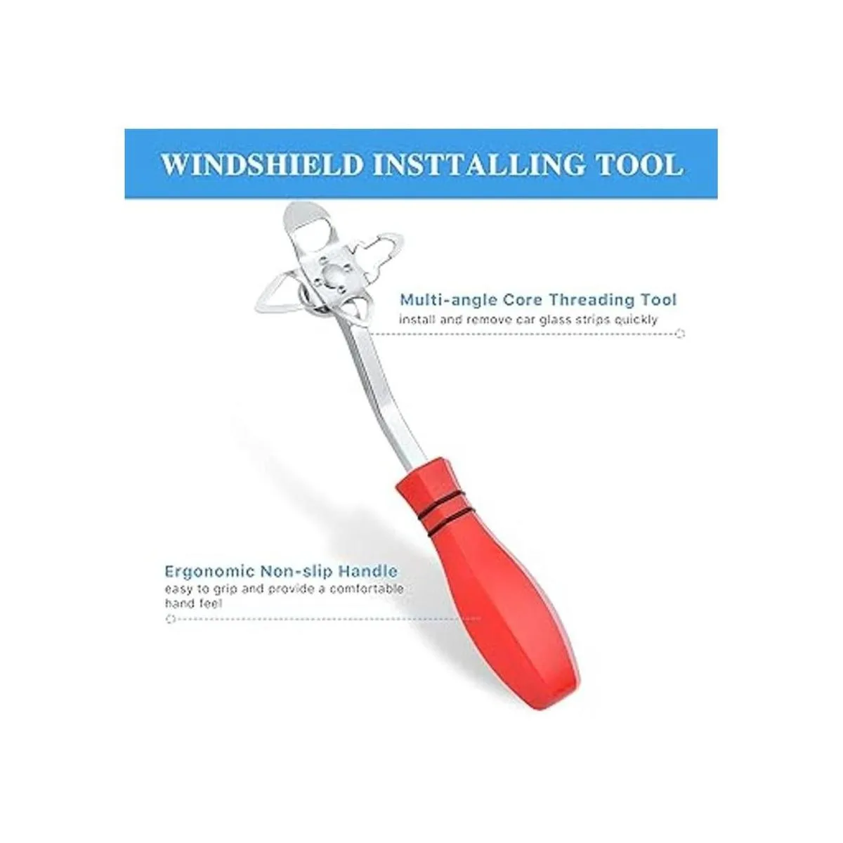 Herramienta de extracción de parabrisas de 4 núcleos: el diseño de herramientas de rosca de 4 núcleos con múltiples ángulos permite que la rosca en la punta superior gire 90 grados, proporcionando espacio adicional que otros no pueden trabajar en el parabrisas u otros lentes en productos semiacabados para trabajadores de instalación.