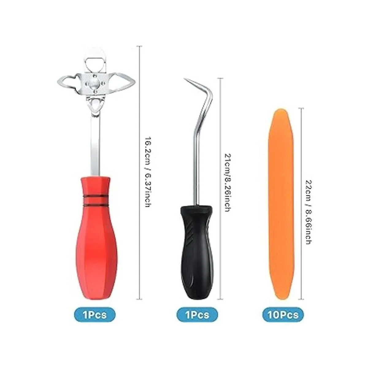 Práctica herramienta de instalación del parabrisas: recibirás 3 tipos de herramientas necesarias para el mantenimiento del parabrisas y el vidrio, incluyendo 1 herramienta de parabrisas, 1 extractor de aletas y 10 herramientas de barra de parabrisas. El paquete de combinación perfecta hace que sea más fácil reemplazar o instalar el sello de la ventana.