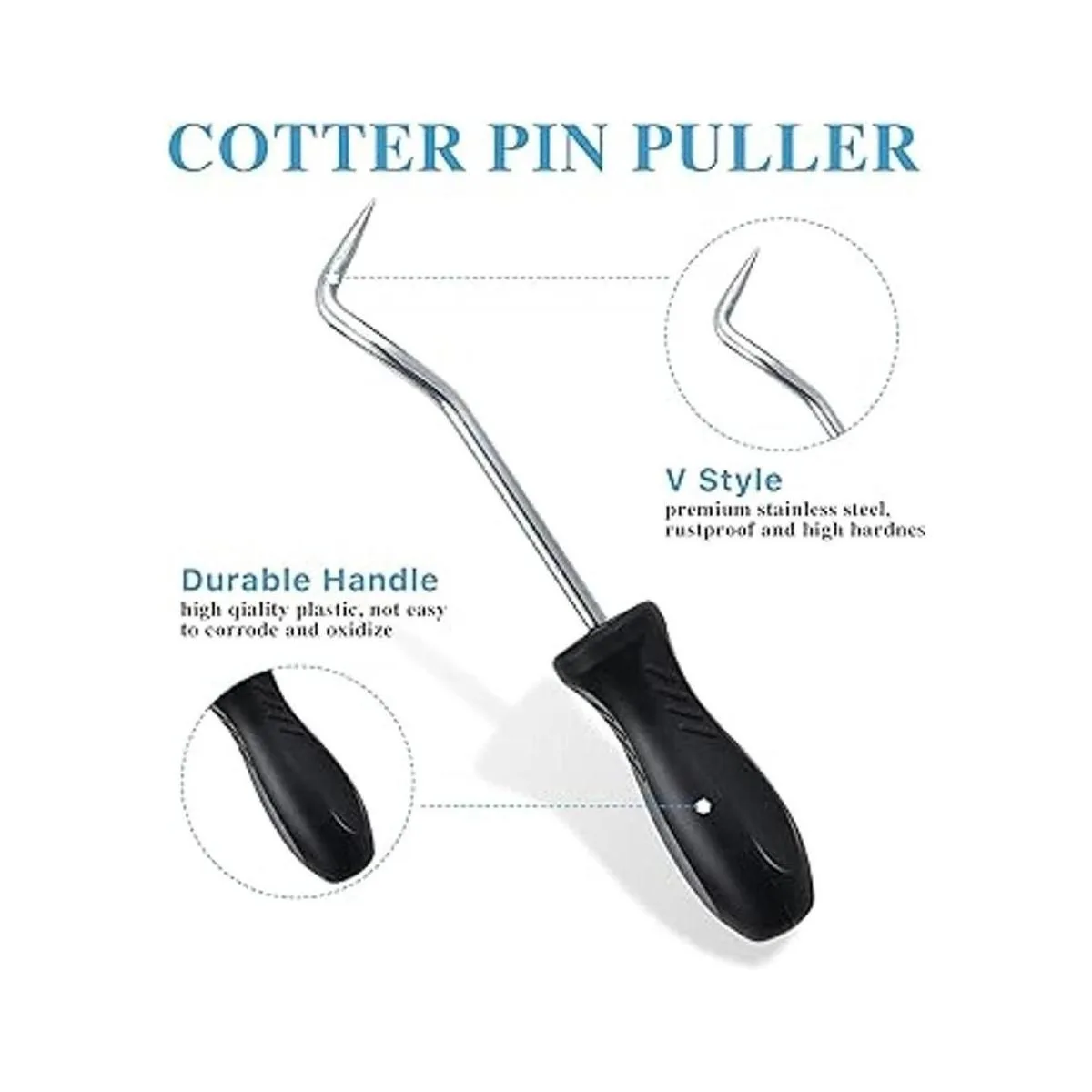 Extractor de pines tipo V: hecho de acero inoxidable de alta calidad, a prueba de óxido, alta dureza, mango de plástico de alta calidad no es fácil de corrosión y oxidación, y el efecto es el mejor cuando se utiliza con abrazadera de manguera. Se utiliza principalmente para quitar el cristal de la junta tórica y el limpiaparabrisas del parabrisas.