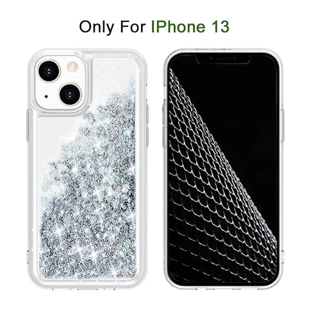 WORLDMOM Funda compatible con iPhone 13, funda protectora de TPU transparente con purpurina colorida y transparente compatible con iPhone 13 6.1 pulgadas 2021, color plateado