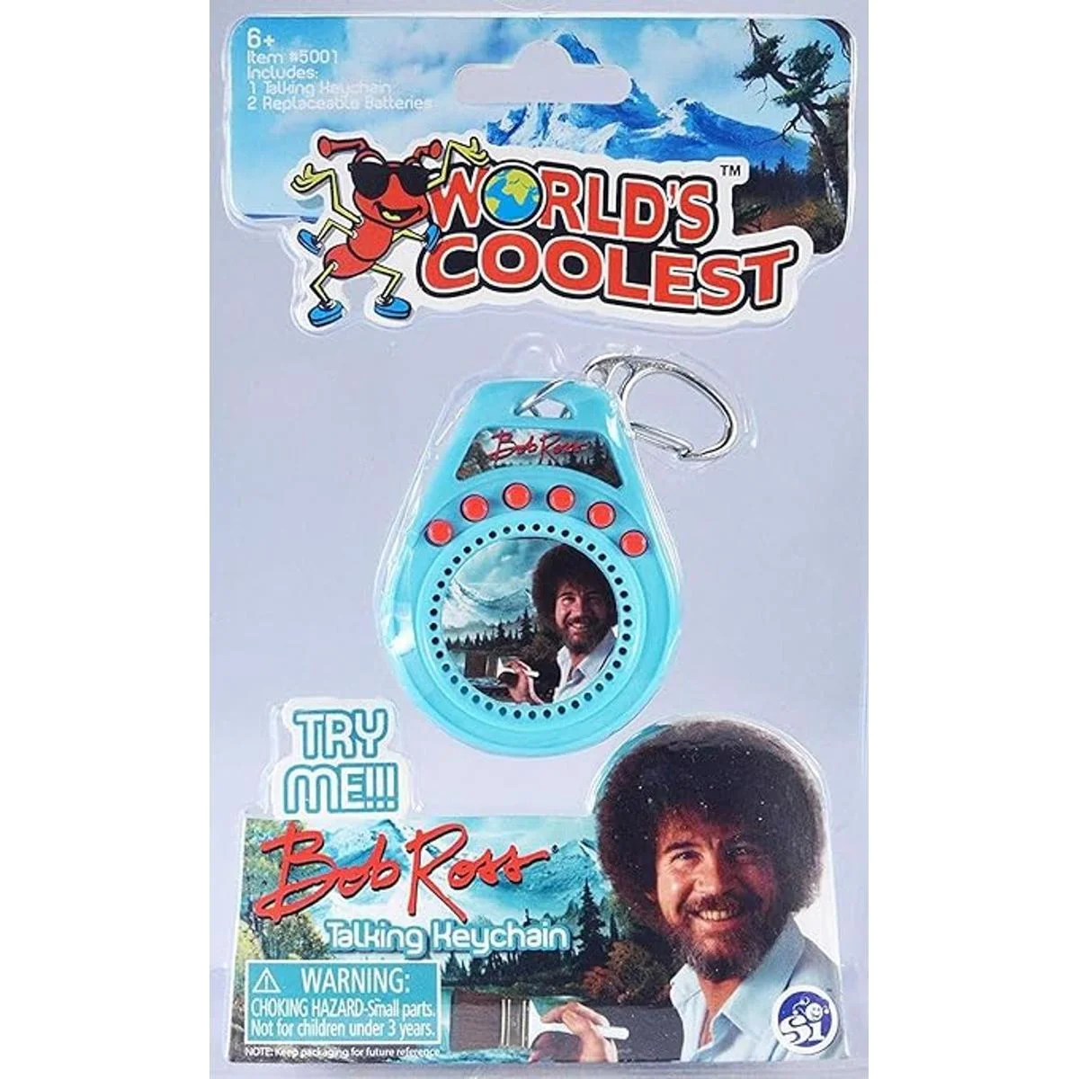 Cuenta con seis frases clásicas de Bob Ross. Vamos a volvernos locos, lo que difiernos, todo el mundo necesita un amigo, tener que oscurecer para mostrar luz, como en la vida, tal vez haya un pequeño árbol feliz que vive aquí, Vamos a poner algunos pequeños aspectos destacados aquí solo para que los pequeños Rascals brillen al sol, Hagamos algunas nubes bonitas que flotan y diviértete todo el día