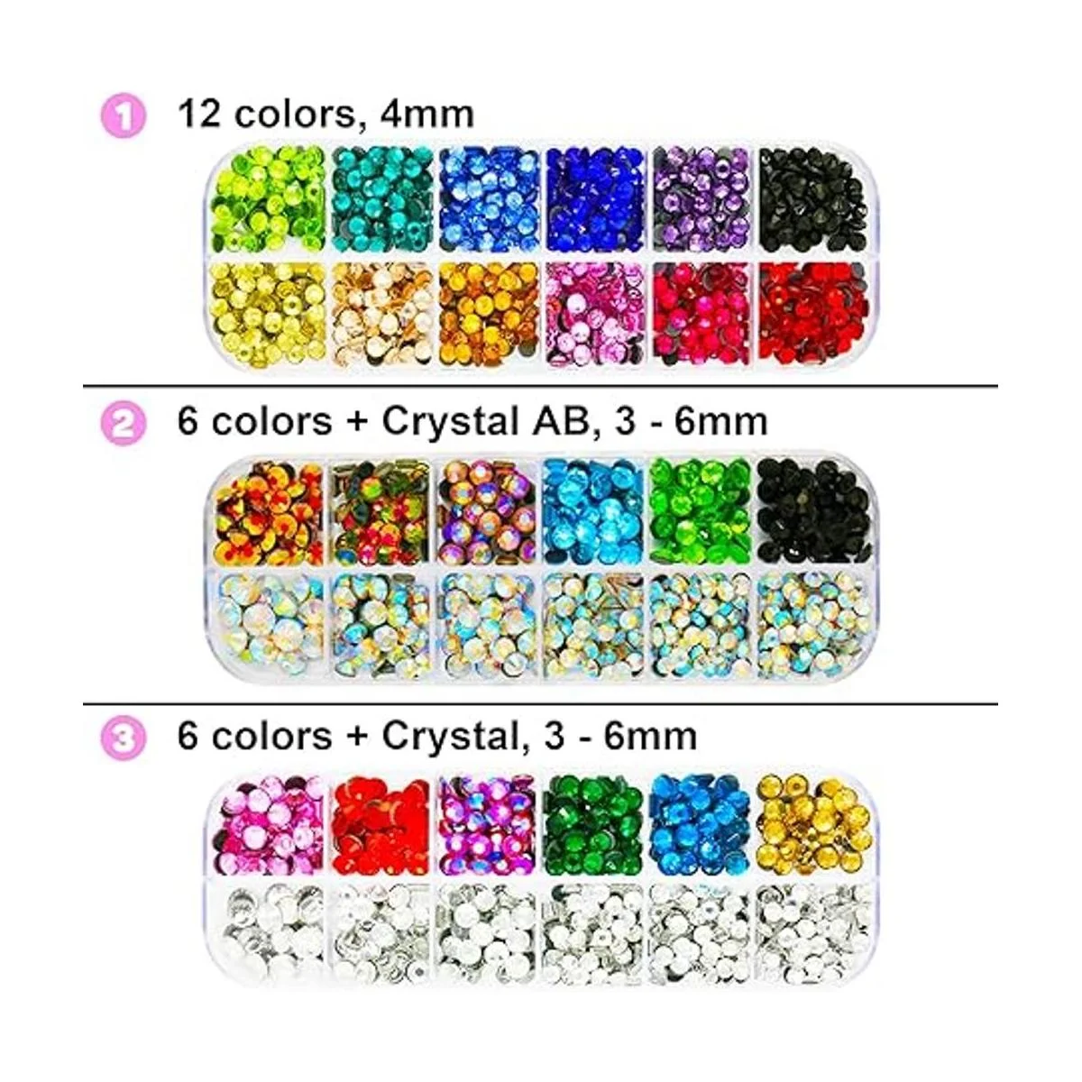 Bolígrafo aplicador de diamantes de imitación Hotfix con una caja de diamantes de imitación fijos en caliente 16SS de 12 colores y una caja de 4 tamaños 10SS 16SS 20SS 34SS Hotfix AB diamantes de imitación transparentes Hotfix. Las piedras son ideales para diseñar decoración brillante en ropa, zapatos, hermosos colores para combinar con atuendos. Las cajas de compartimentos son para llenar y distinguir diamantes de imitación de diferentes colores y tamaños, reutilizables para cargar nuevas gemas