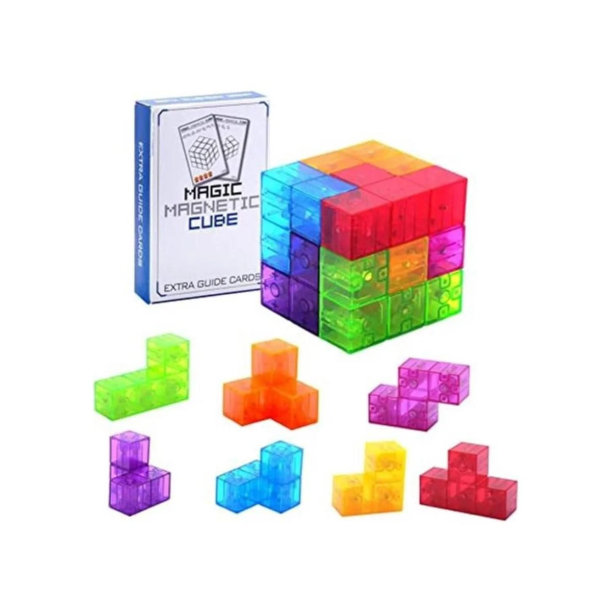 Cubos 3D magnéticos mágicos: nuestro cubo magnético incluye 7 piezas de rompecabezas de cristal de geometría 3D con 54 piezas de cartulina guía 108 rompecabezas, diferentes formas y colores. Los niños pueden organizar cientos de formas de cubo como quieran. Diferentes colores son un buen reconocimiento de color para los niños.