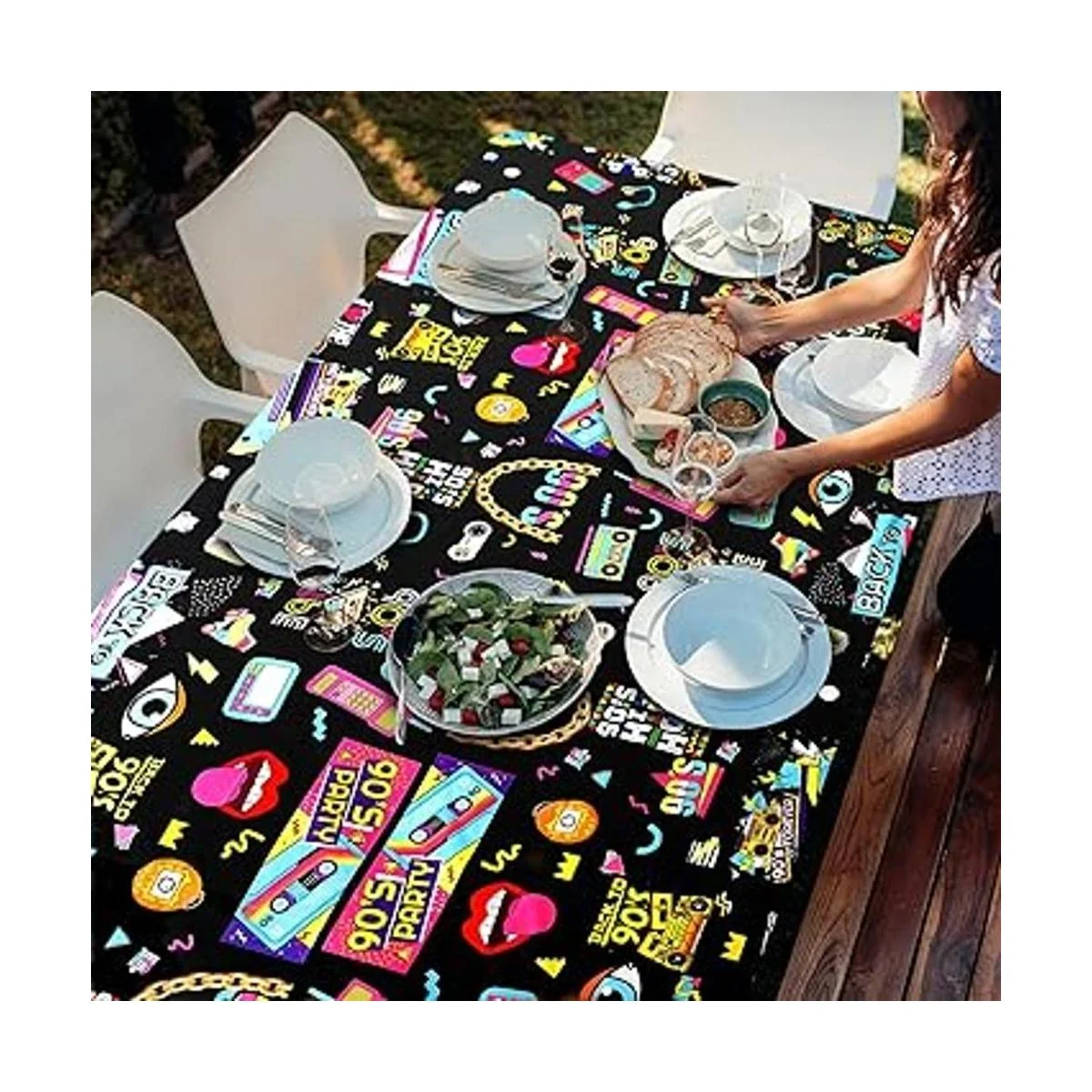 Vibrante diseño de fiesta de los 90: este juego de manteles de fiesta de los 90 está diseñado en estilo retro y colorido de los 90. Decorar tu fiesta de los años 90 con esta decoración de mesa de los años 90 puede hacer que tu fiesta esté llena del ambiente de los años 90 y traerte de vuelta a los años 90.