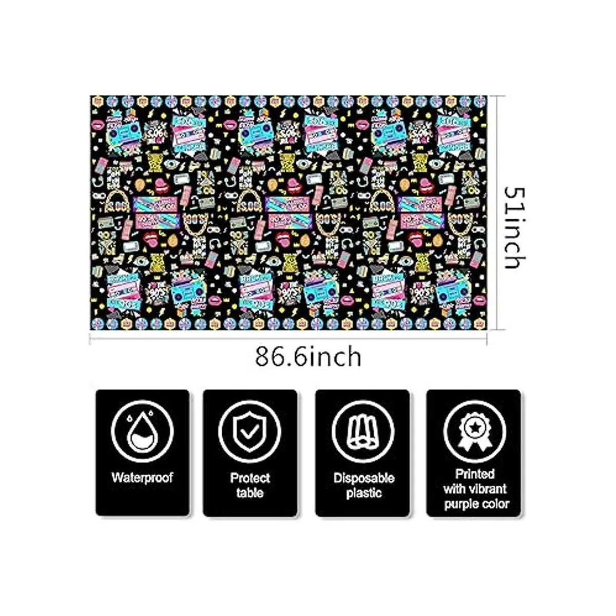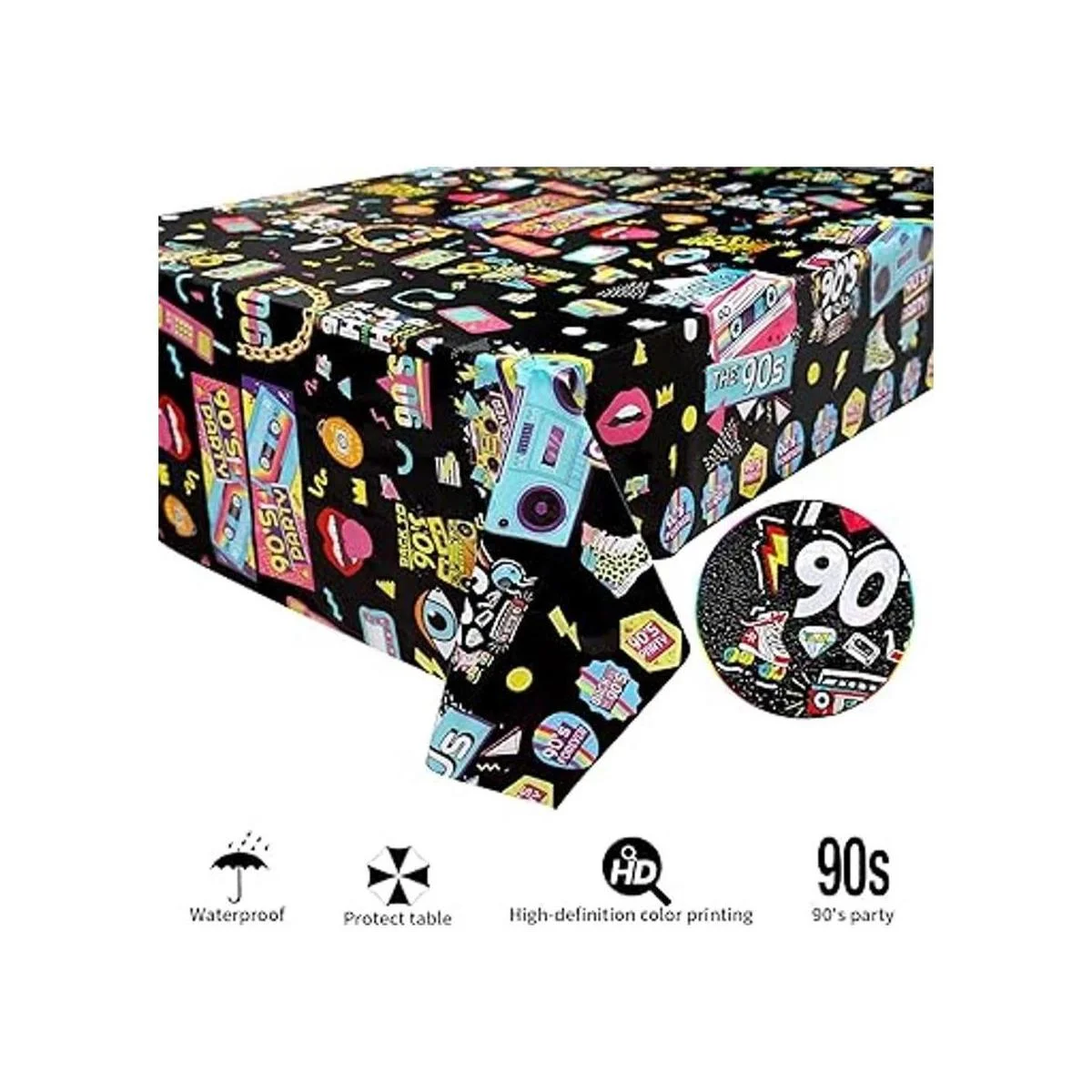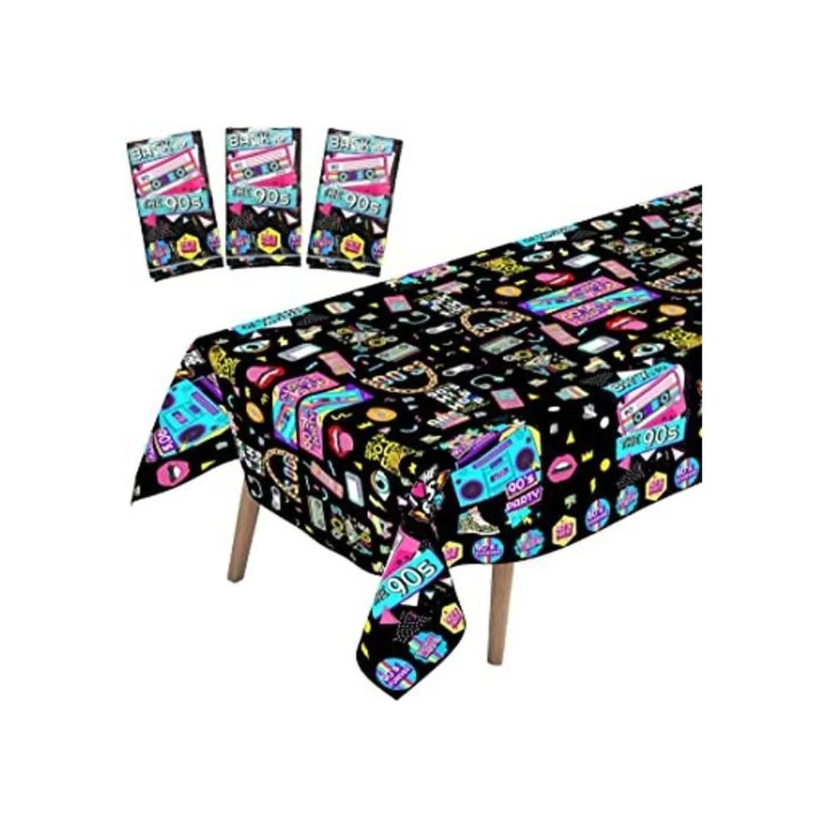 Lo que obtienes: recibirás 3 manteles de plástico de los años 90, cantidad adecuada para decorar tu fiesta de cumpleaños de los años 90 o evento retro.