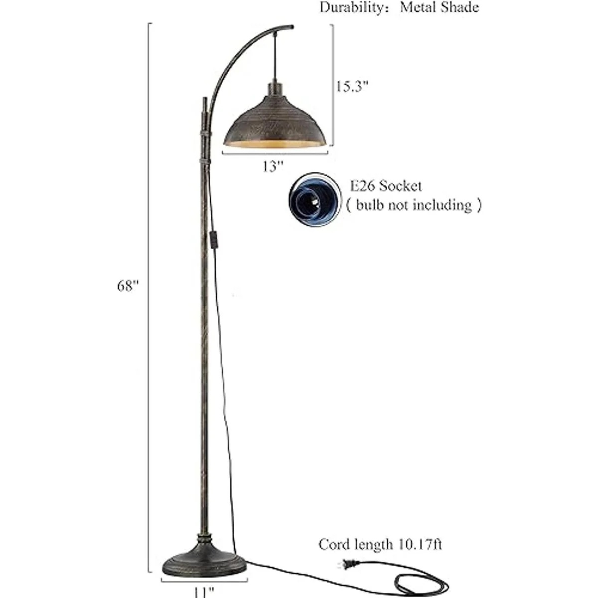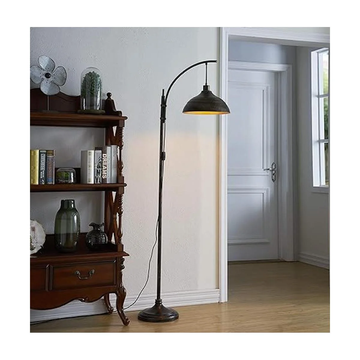 WOXXX Lámpara de pie industrial, moderna lámpara de pie rústica con acabado de bronce envejecido, lámpara de pie estilo granja para sala de estar, dormitorios, oficina, lámpara de lectura alta y arqueada vintage