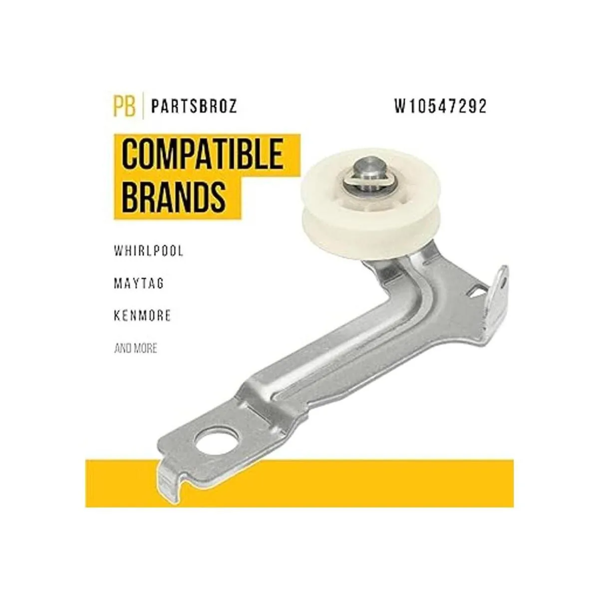 WPW10547292 W10547292 Polea loca de repuesto por PartsBroz Compatible con Kenmore, piezas de secadora Whirlpool Reemplaza AP6022817 PS11756154 Montaje de rueda y brazo de polea loca mejorado y probado