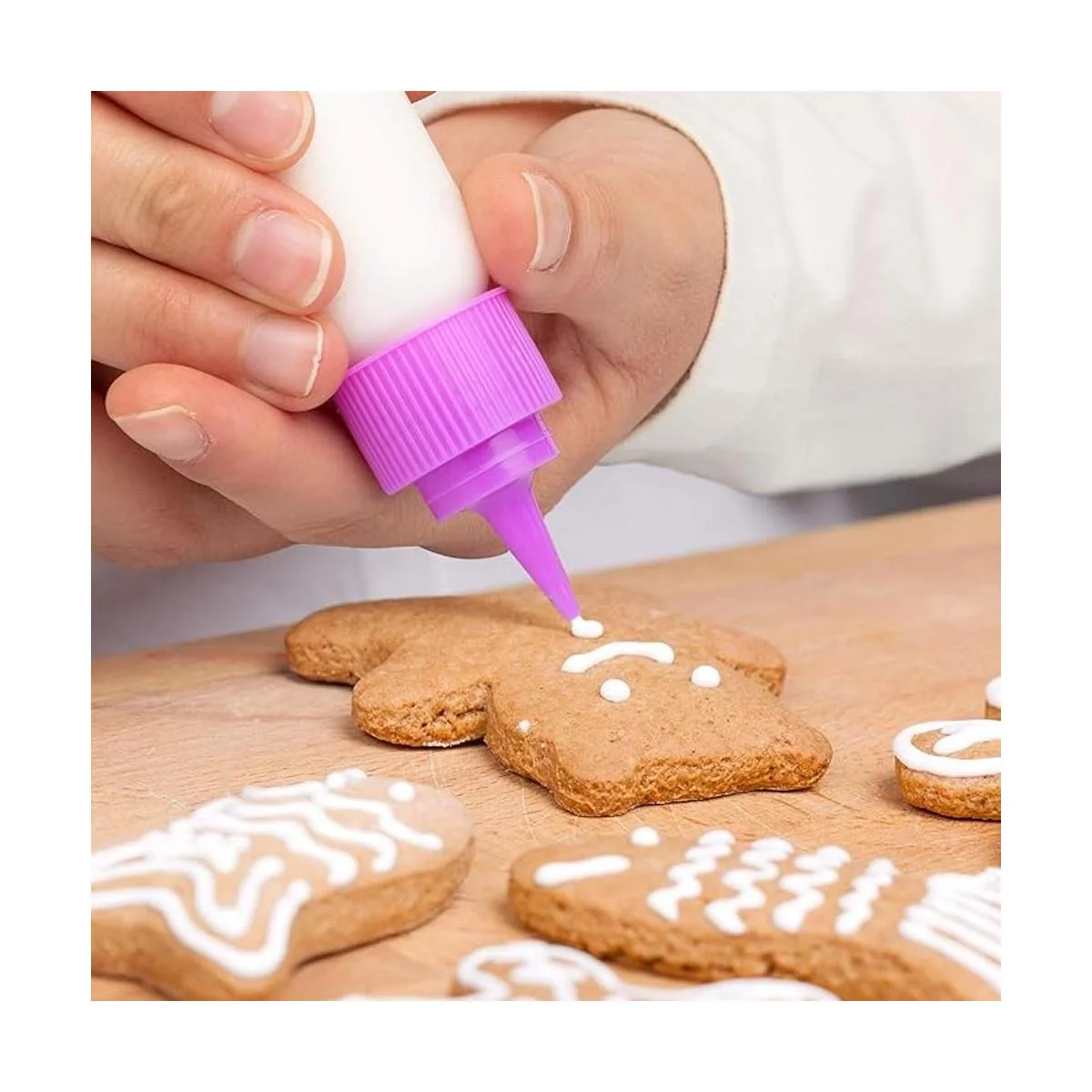 Calidad: estas botellas de glaseado para decoración de galletas con tapa están hechas de plástico de polietileno de baja densidad LDPE, la tapa de punta de polipropileno PP y la cubierta de la tapa es de polipropileno PS.