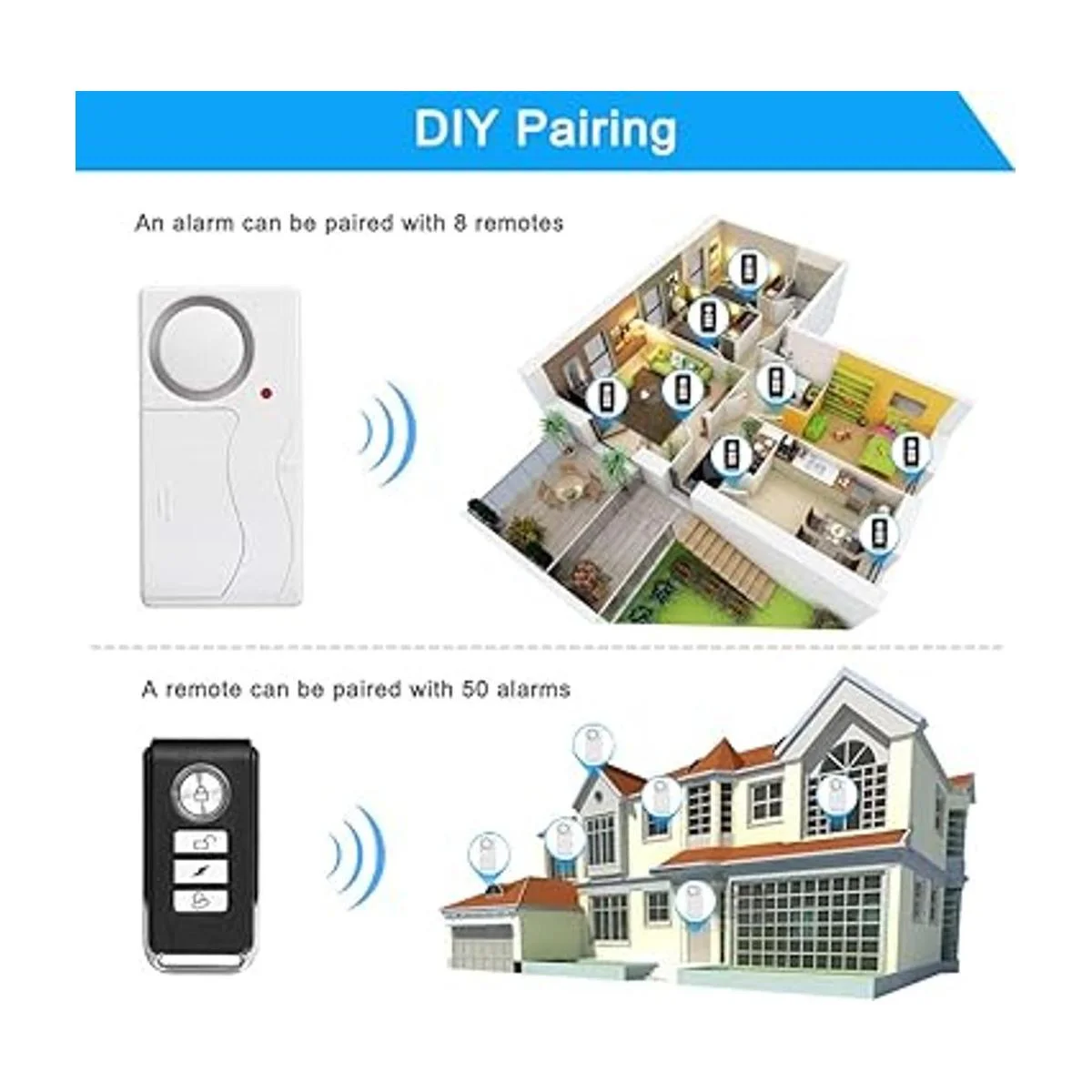 Alarma de seguridad programable, más alarmas y mandos a distancia disponibles para emparejamiento de bricolaje, los mandos a distancia pueden controlar dos alarmas al mismo tiempo, o controlar individualmente cada alarma.