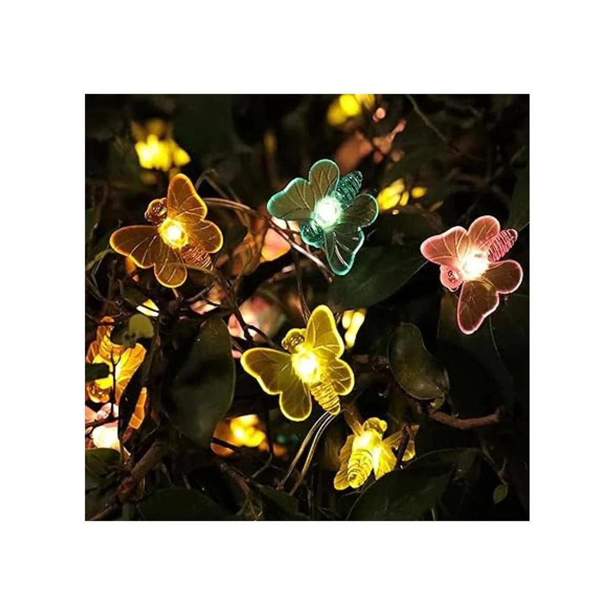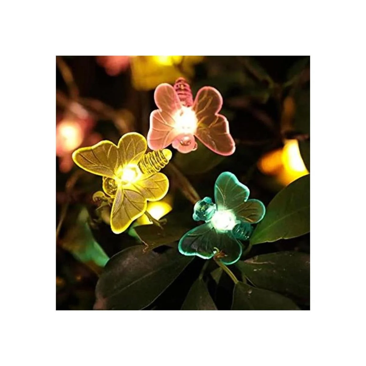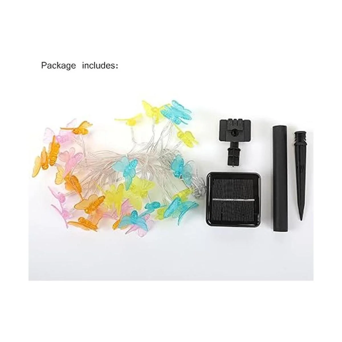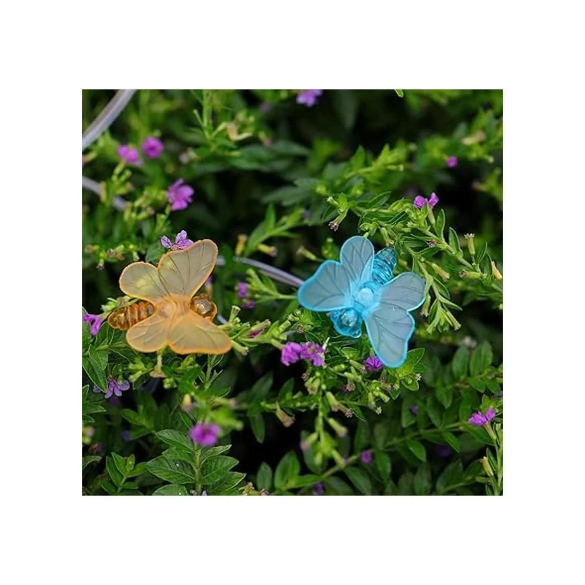 Cadena de luces solares con 32 LED de mariposa, creando un jardín vibrante e interesante.