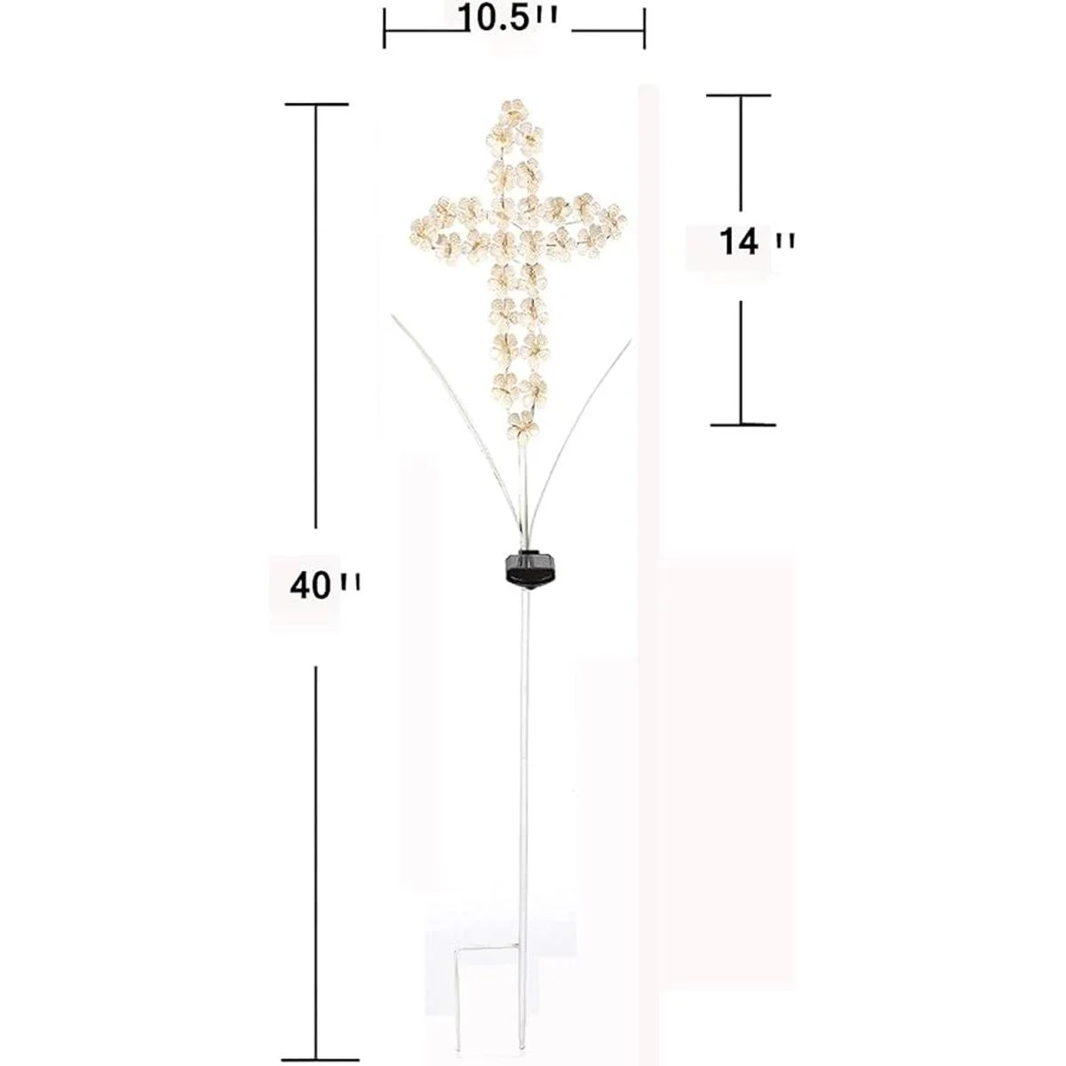WSgift Luces solares de estaca de cruz para hortensias de metal, regalo conmemorativo con 28 luces LED solares cruzadas perfectas como regalos de recuerdo cruzado y regalos de condolencias (10 pulgadas de ancho x 40 pulgadas de alto)