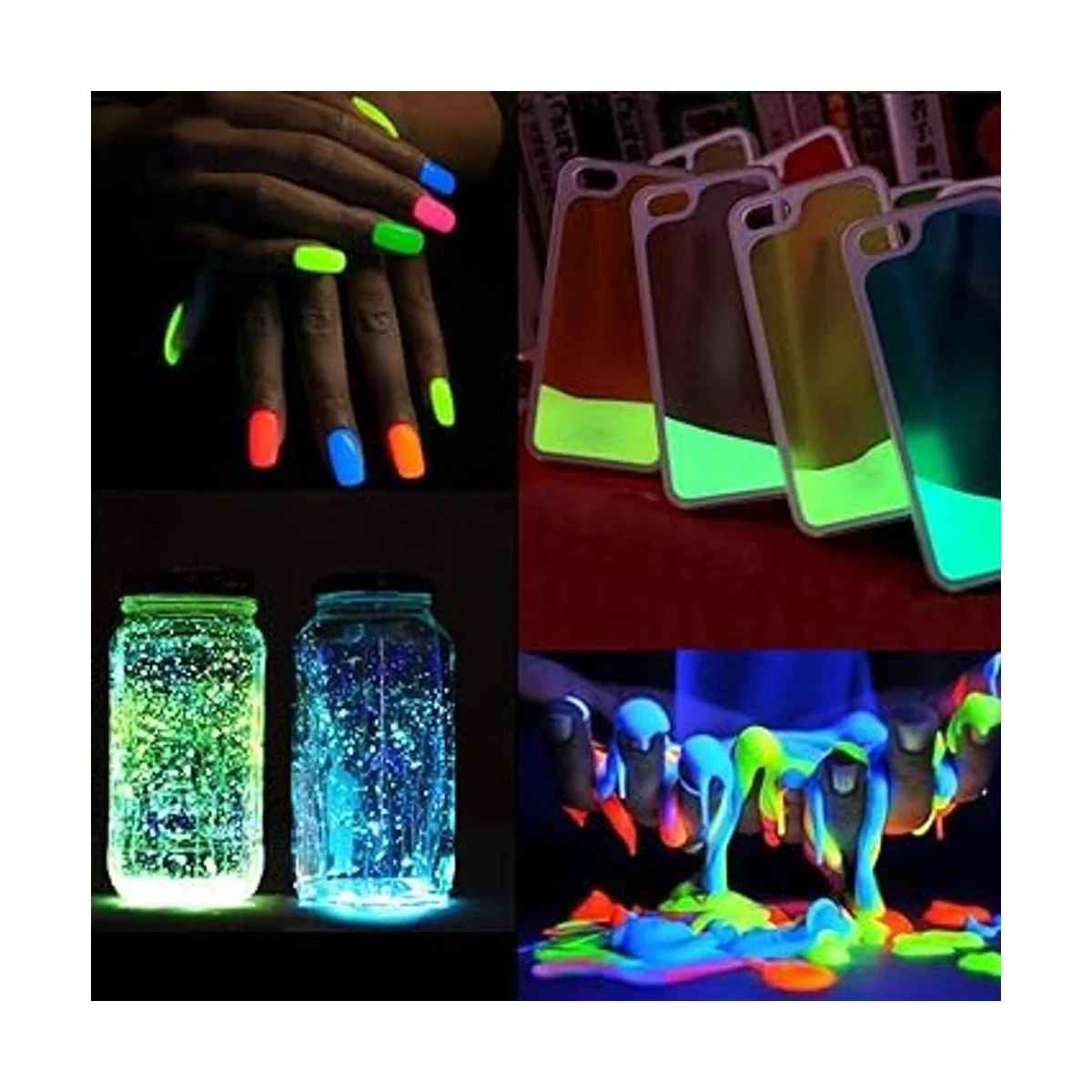 Polvo brillante multifuncional: estos slime brillan en la oscuridad son adecuados para slimes, uñas, resinas epoxi, pinturas, bellas artes, manualidades, carteles y bricolaje. Perfecto para decoraciones llamativas