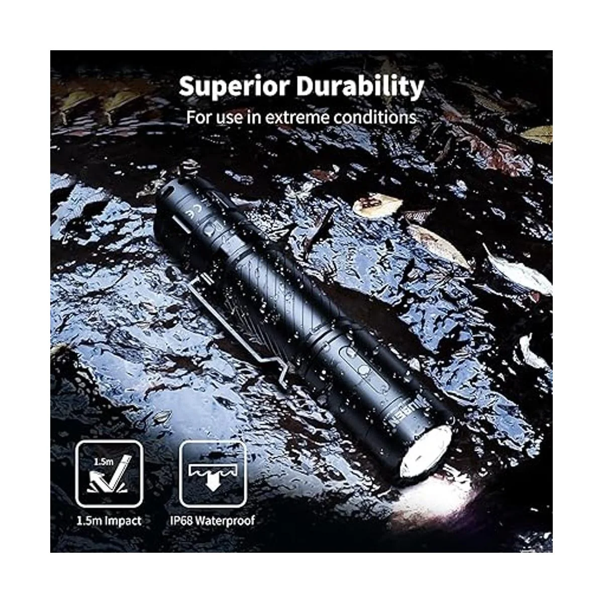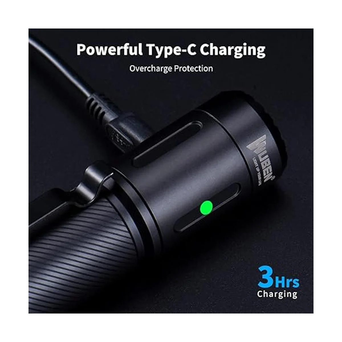WUBEN C3 Linternas recargables de 1200 lúmenes de alto nivel superbrillantes, linterna táctica LED alimentada por EDC con luz de flash IP68, impermeable, 6 modos de luz para campamento, emergencia, al aire libre