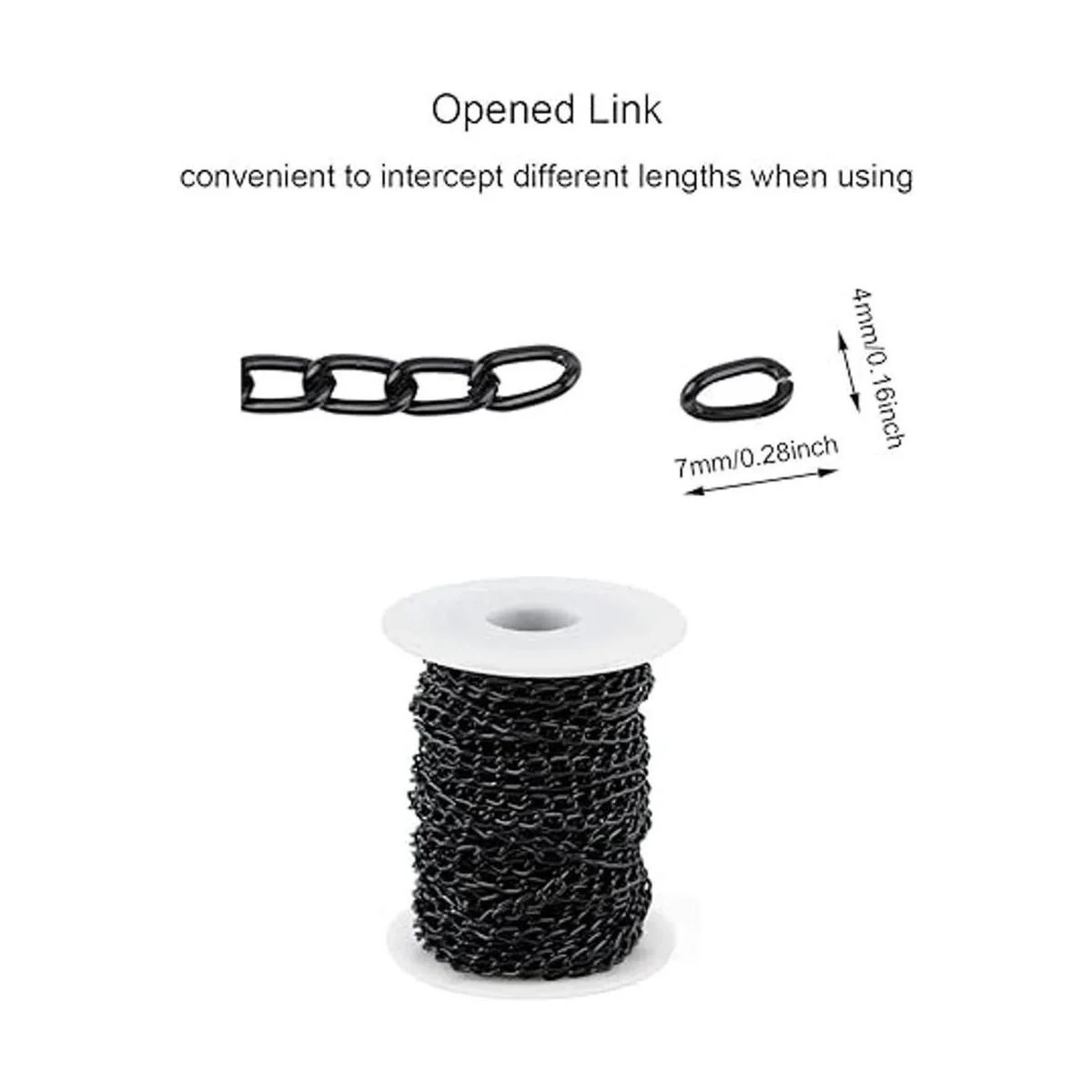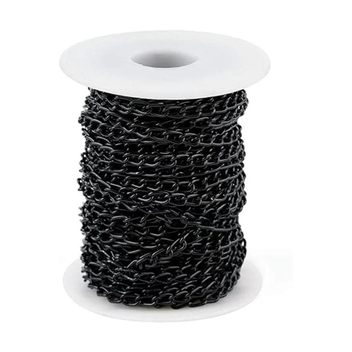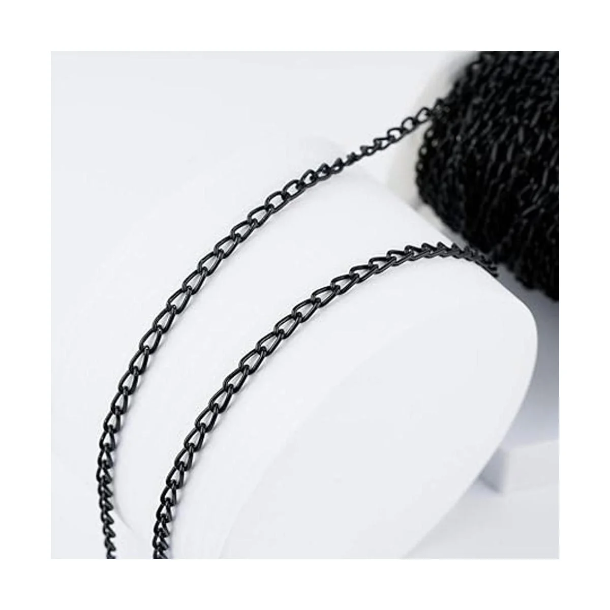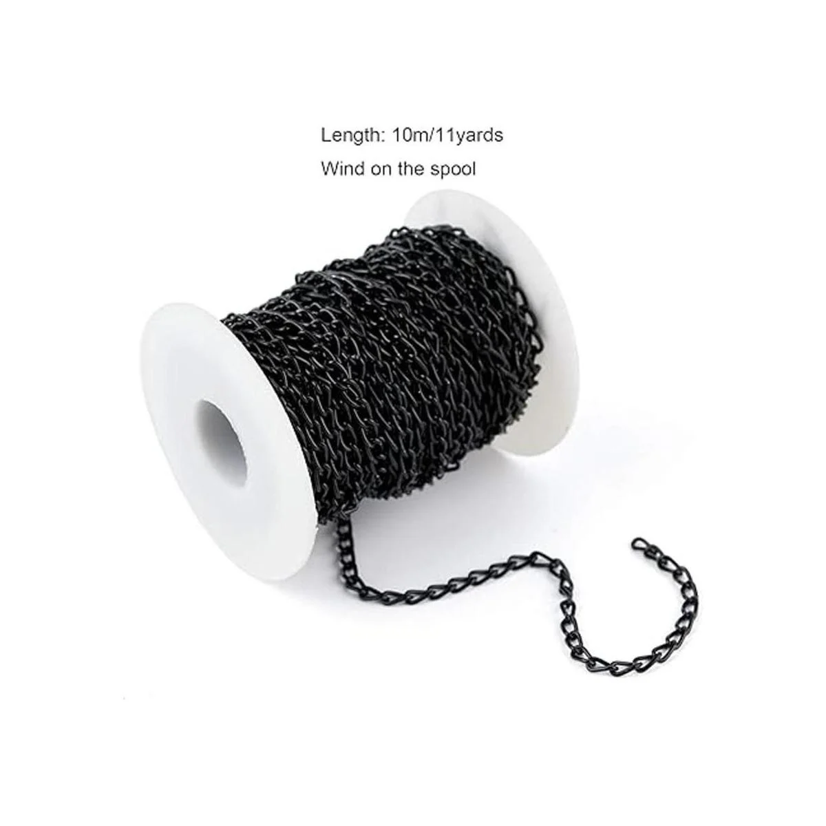 WUBOECE Cadena de eslabones de aluminio de 11 yardas con carrete, collar de cruz torcida de 0.157 in de ancho para encontrar cadenas a granel para manualidades, suministros de fabricación de joyas, color negro