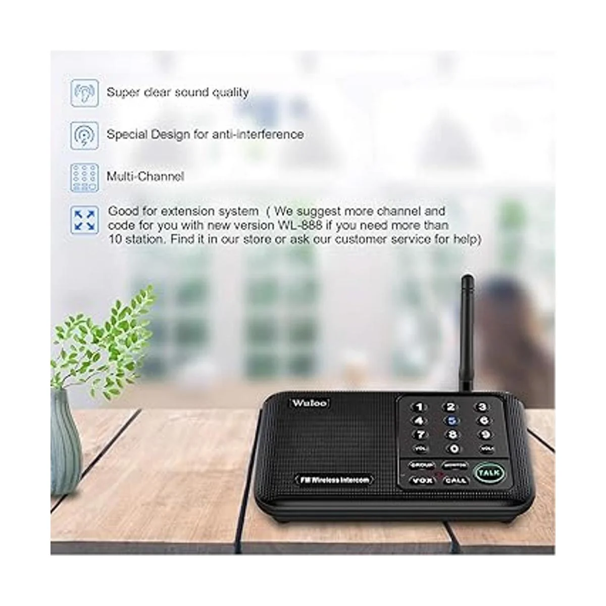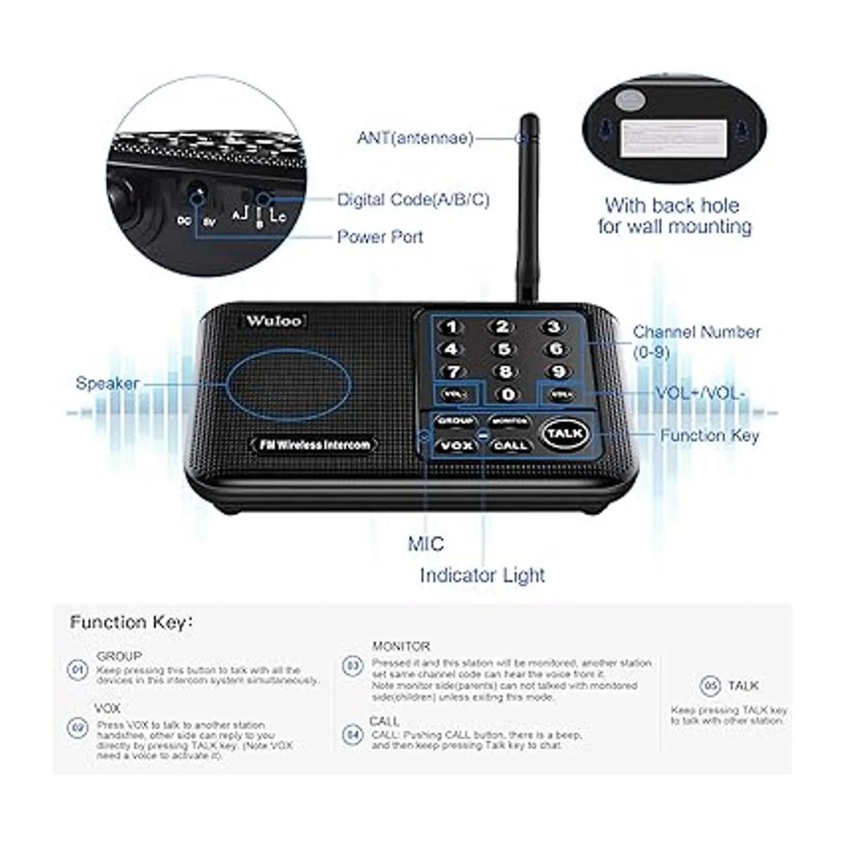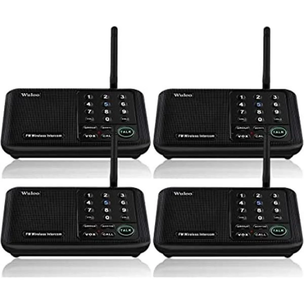 Wuloo Intercomunicadores inalámbricos para el hogar de 5280 pies, rango 10 canales 3 código, sistema de intercomunicación inalámbrico para el hogar, casa de negocios, oficina, intercomunicador de habitación a habitación, sistema de comunicación del hogar 4 paquetes, negro