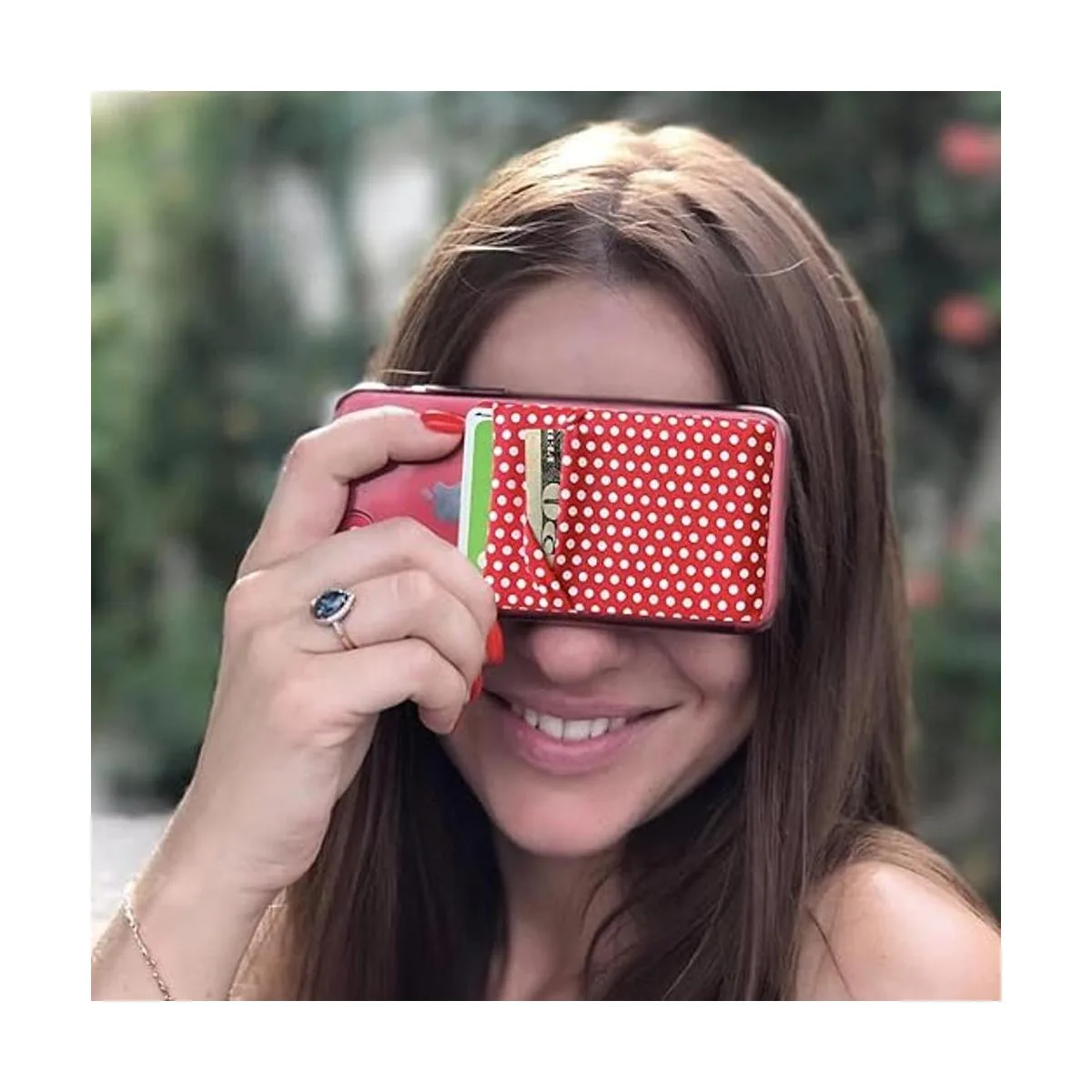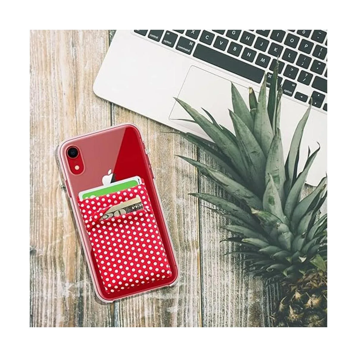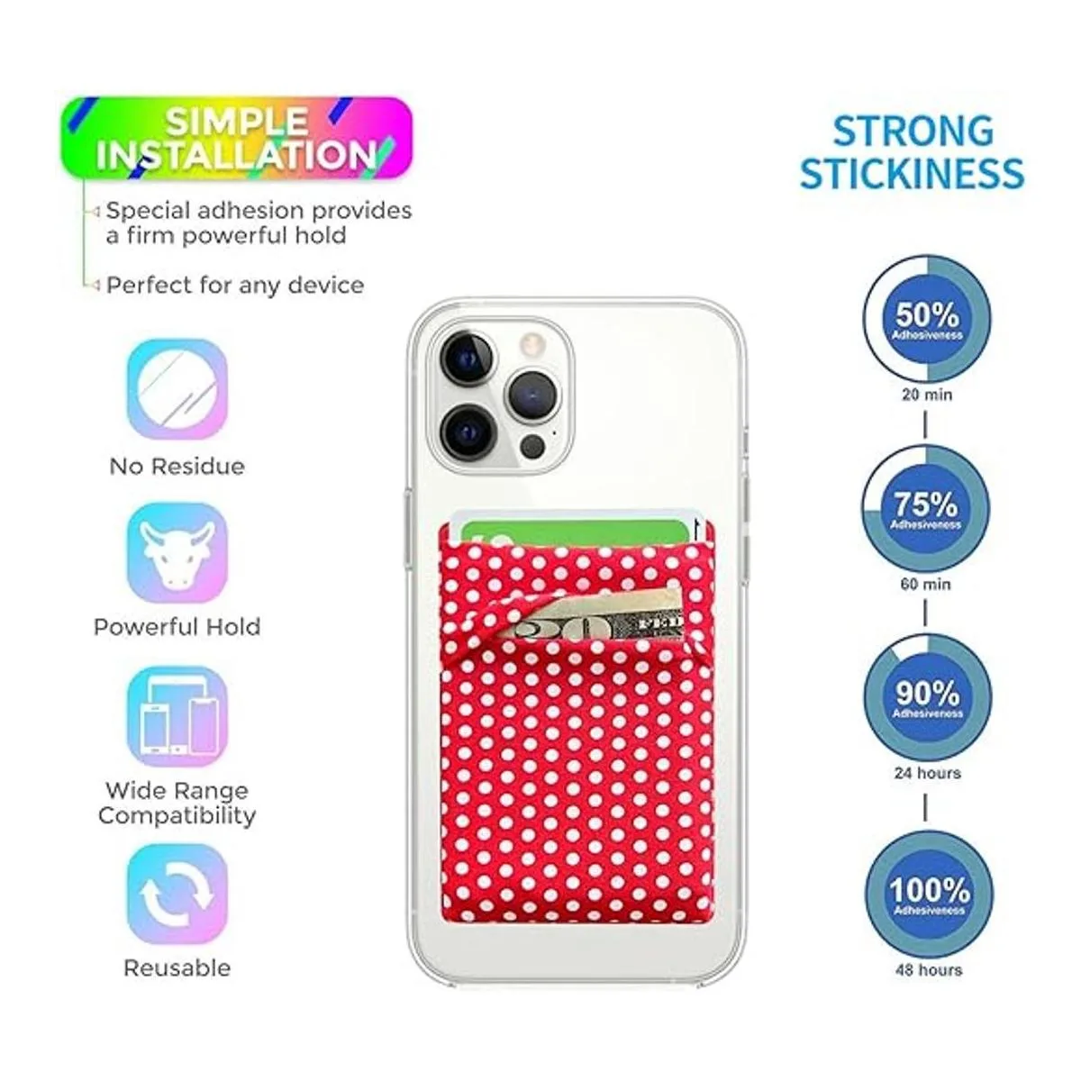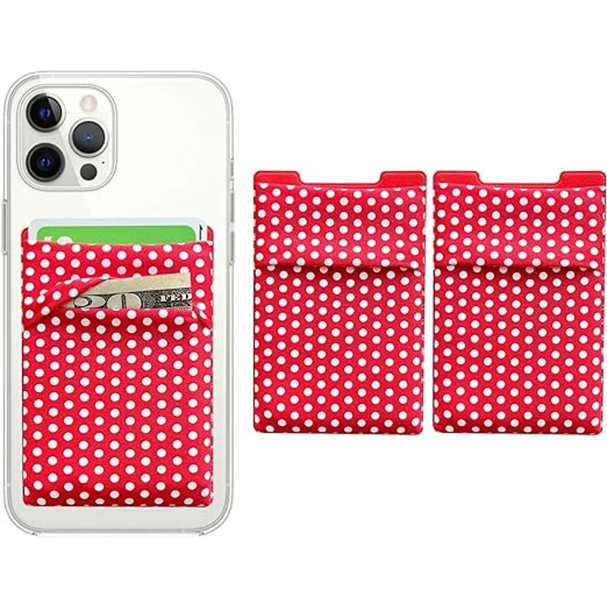 WUOJI Cartera de tarjetas de teléfono con bloqueo RFID Doble bolsillo seguro Autoadhesivo ultradelgado para tarjetas de crédito, fundas para tarjetas, cartera de teléfono, adhesivo para todos los teléfonos inteligentes lunares rojos, 2 piezas